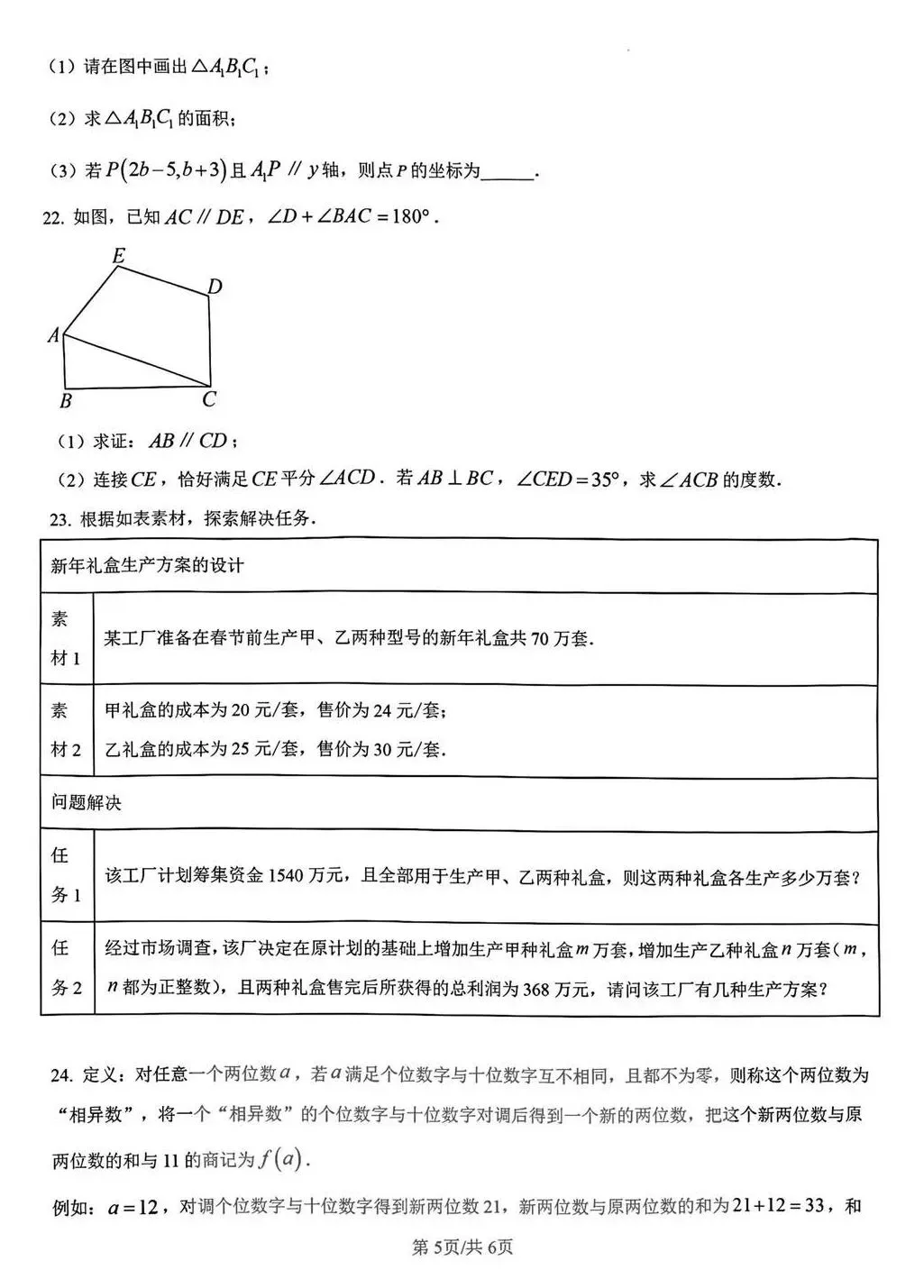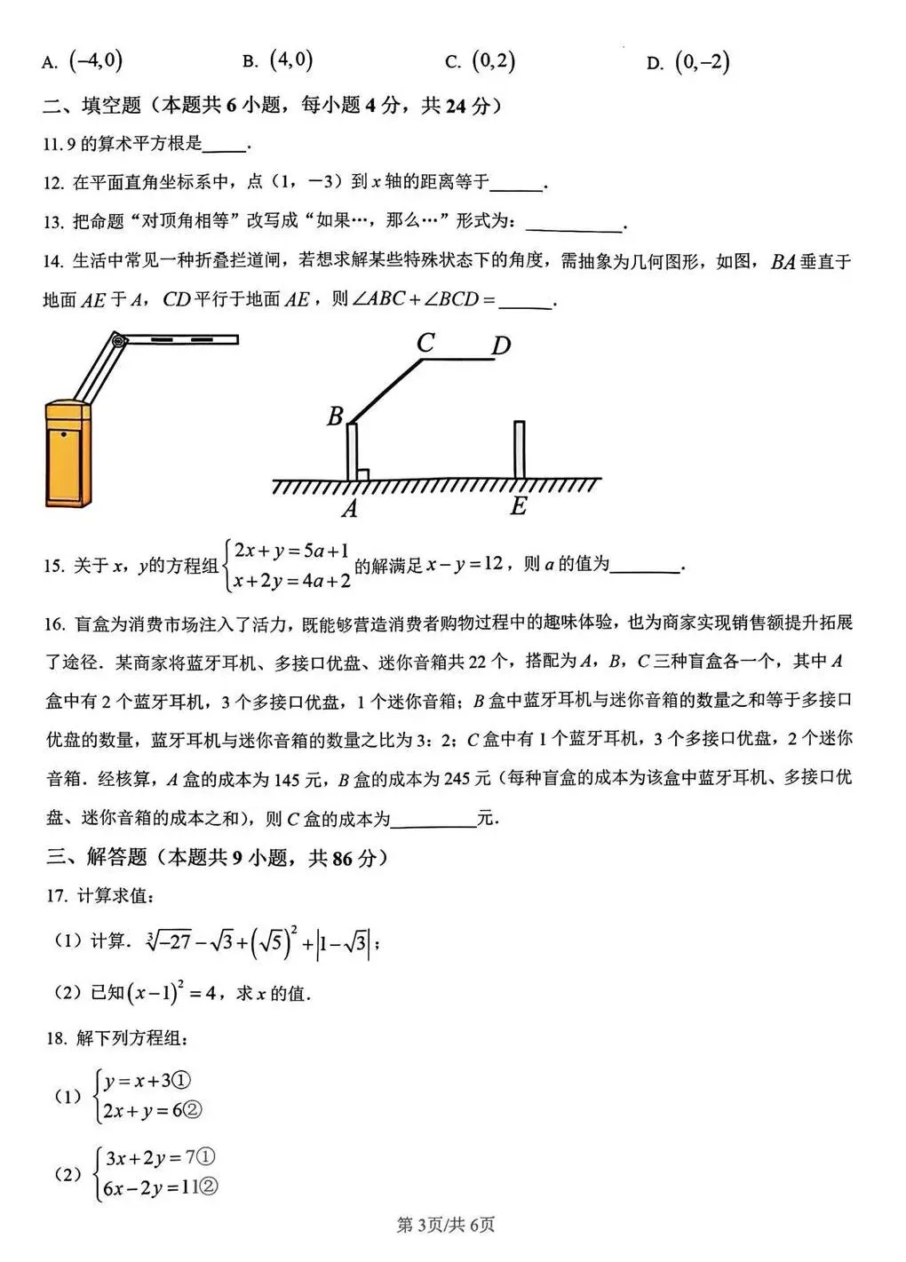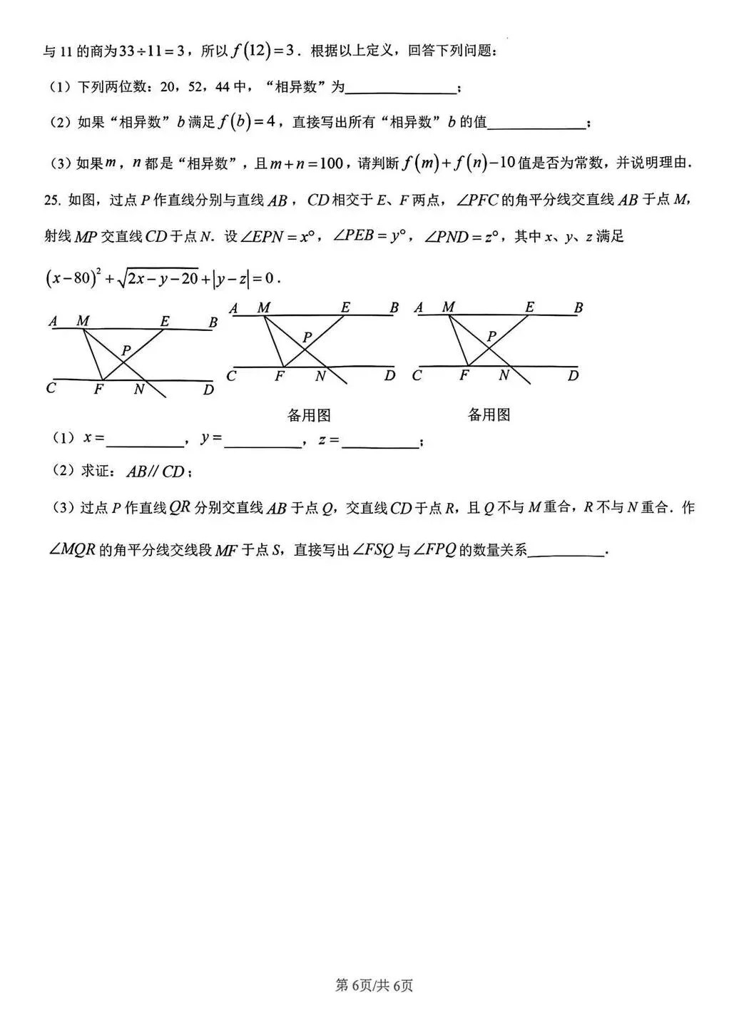 【期中数学试卷】2025-2026学年七年级下学期期中监测卷(人教)