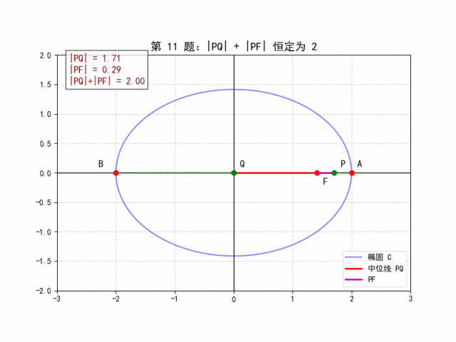 - 对于 B 选项:。当 为椭圆右顶点 时, 取到最小值 。因此 的最小值为 。B 正确。