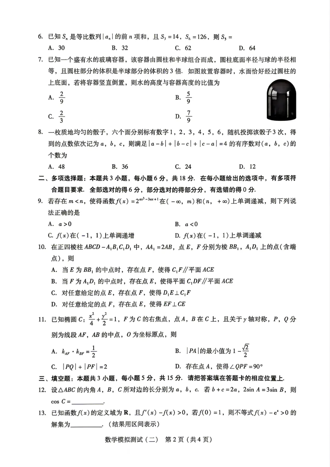 今天给大家带来的是广东二模的数学试卷,这张试卷质量还是很不错的,很一些题目是由竞赛/高考题改编而来的。接下来,笔者就分析一下单选压轴,多选压轴,还有填空压轴题。