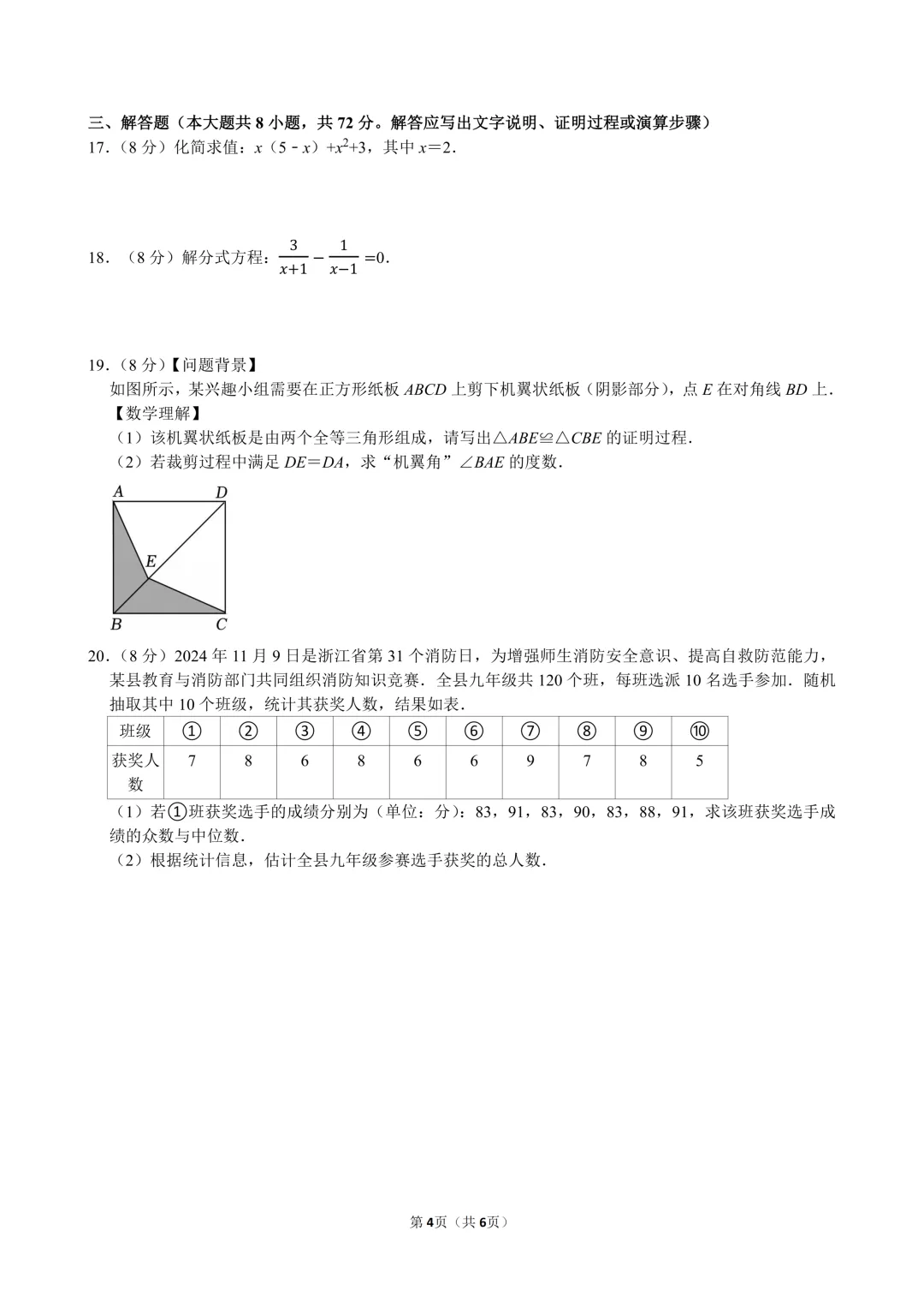 24-25 吉林九年级下册数学期中试卷|初三下册各区名校真题 + 答案|Word 版高清下载