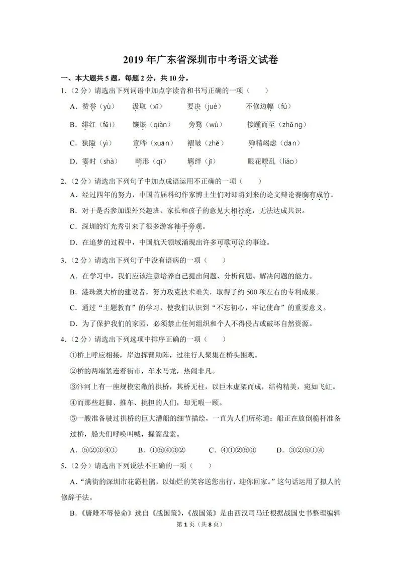 涉及字音、成语、语病等,属于基础题型但需要扎实的语文功底