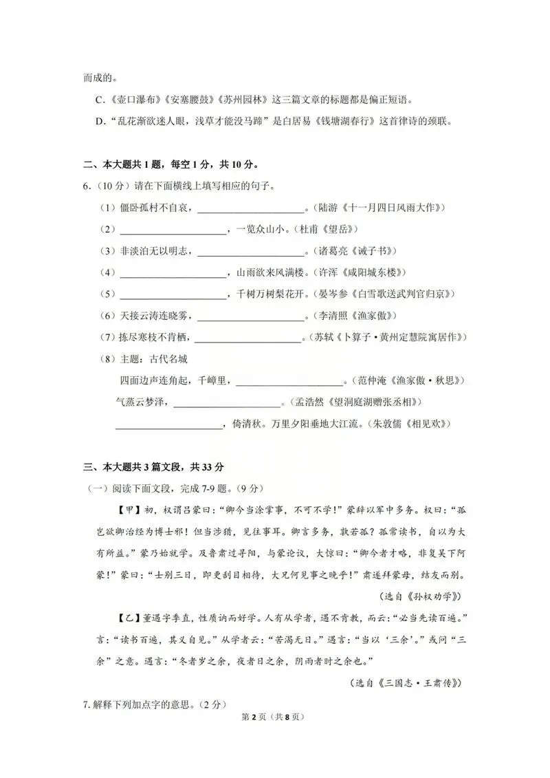 ② 加强传统文化:加强传统文化内容的比重,古诗文默写分值稳定