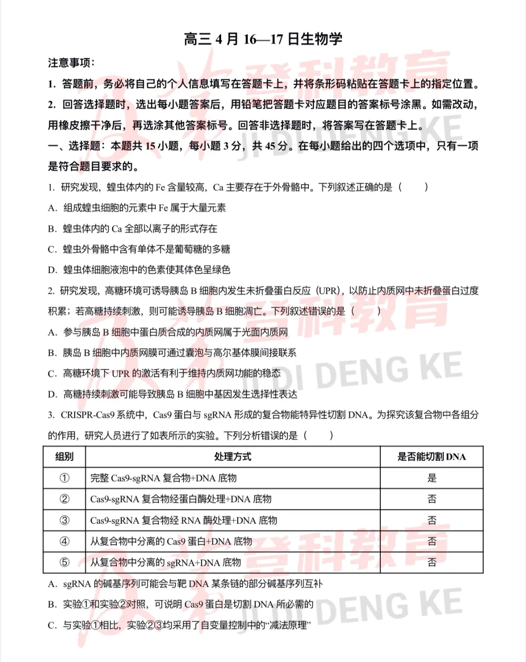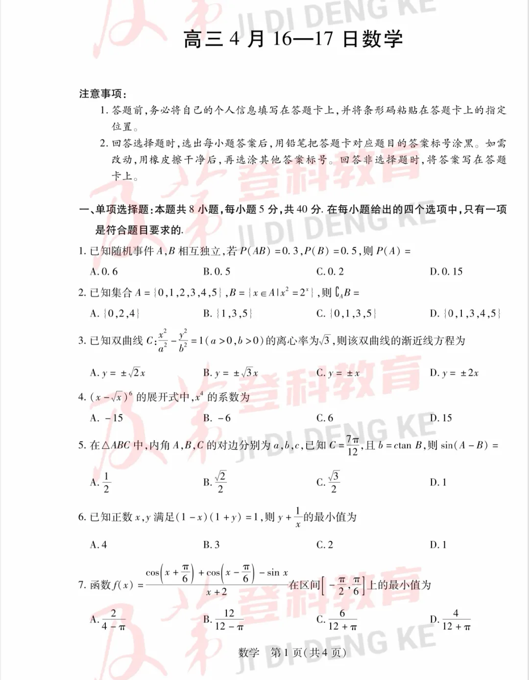 (全科)云南省师大附中4月月考试卷及答案