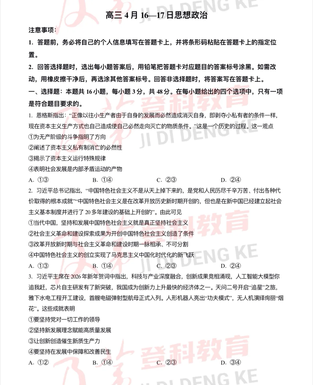 2026年政治考研真题及答案PDF下载【附历年真题试卷电子版】