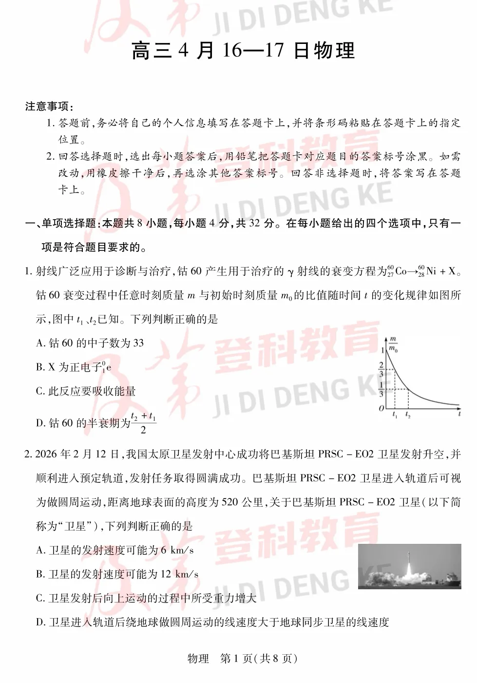2026年合肥高三4月联考全科试卷+答案分享