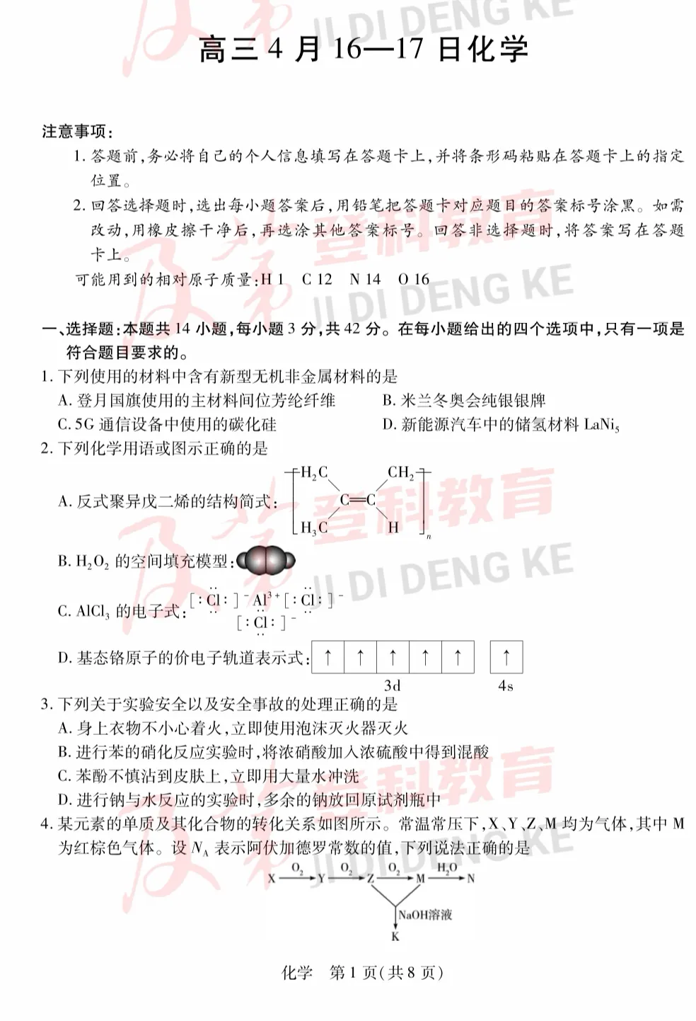 【中考】2026年初中学业水平考试模拟试卷4月【一模】【化学】【】