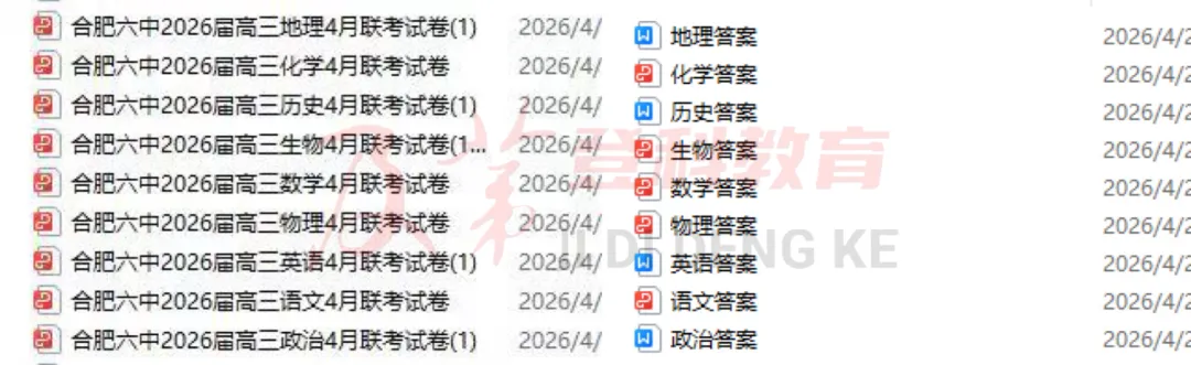 >2026年合肥高三4月联考全科试卷+答案分享