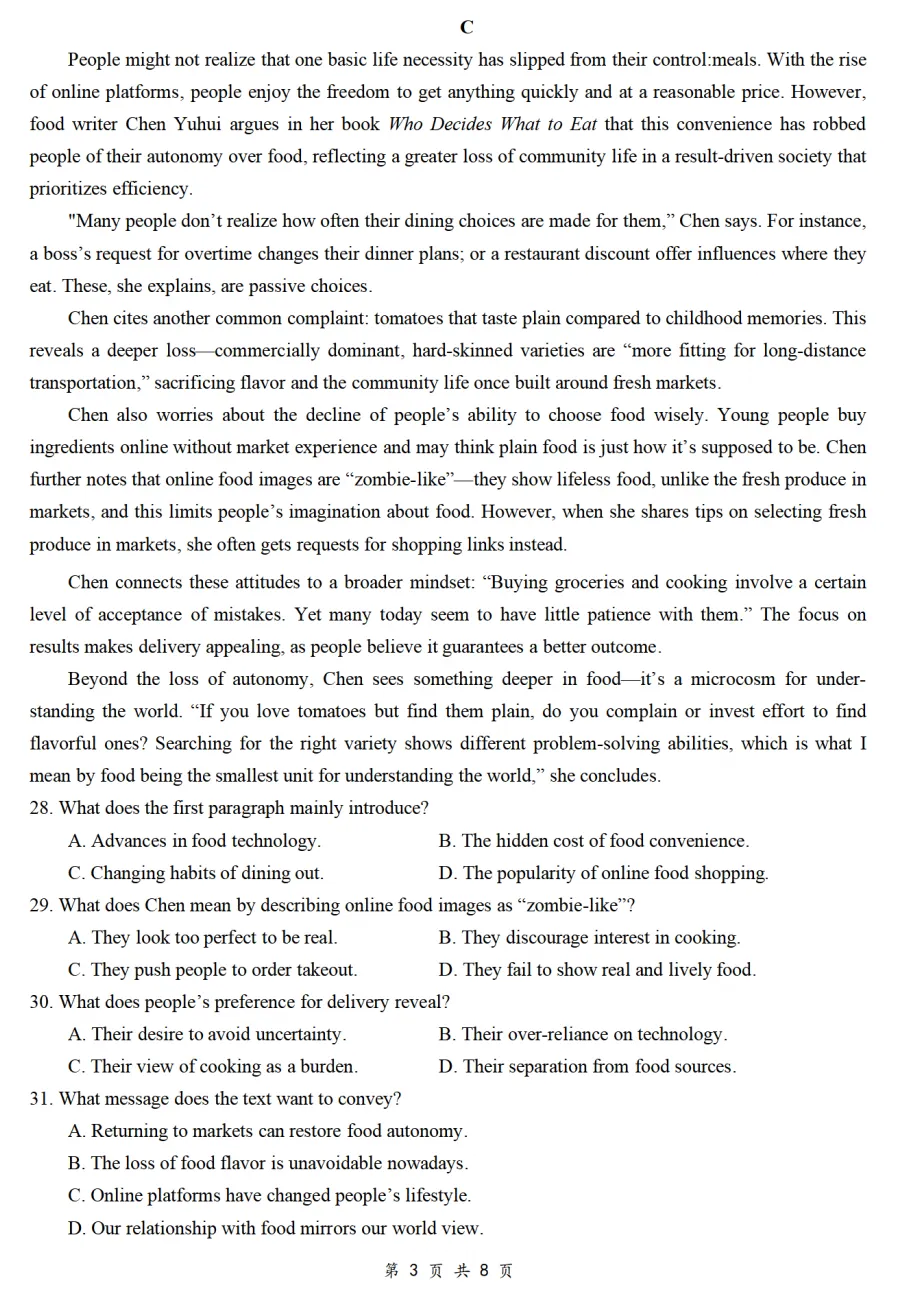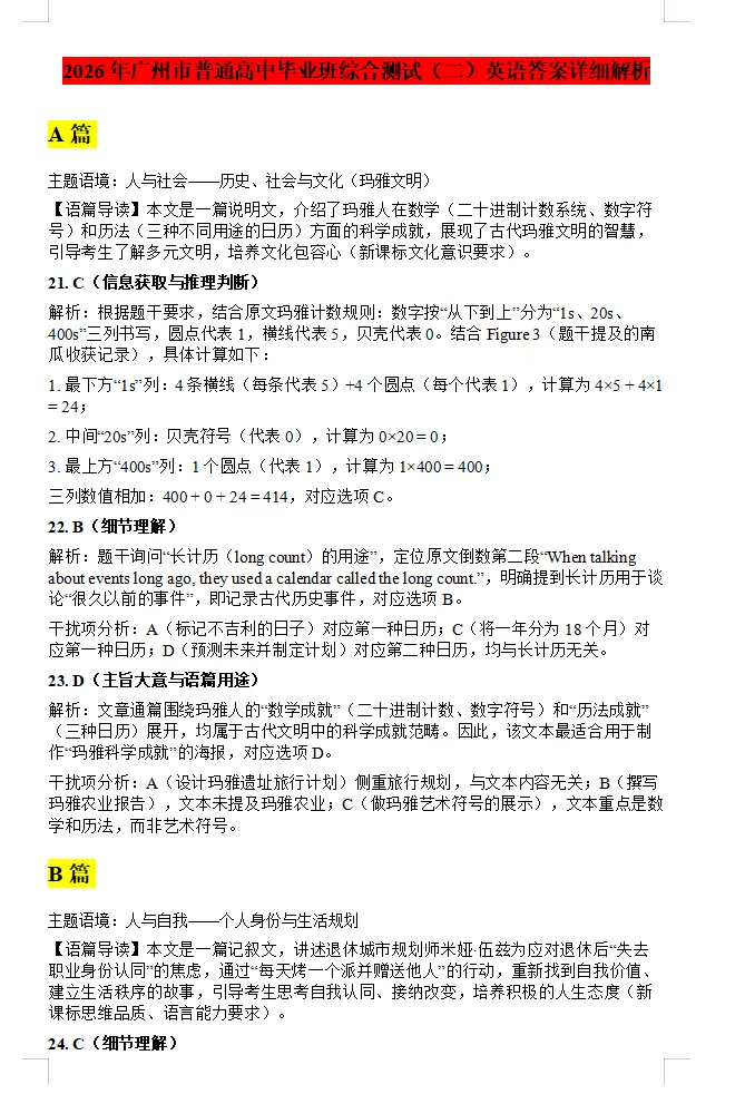 >【重磅试卷】2026届广州二模英语试卷及详解