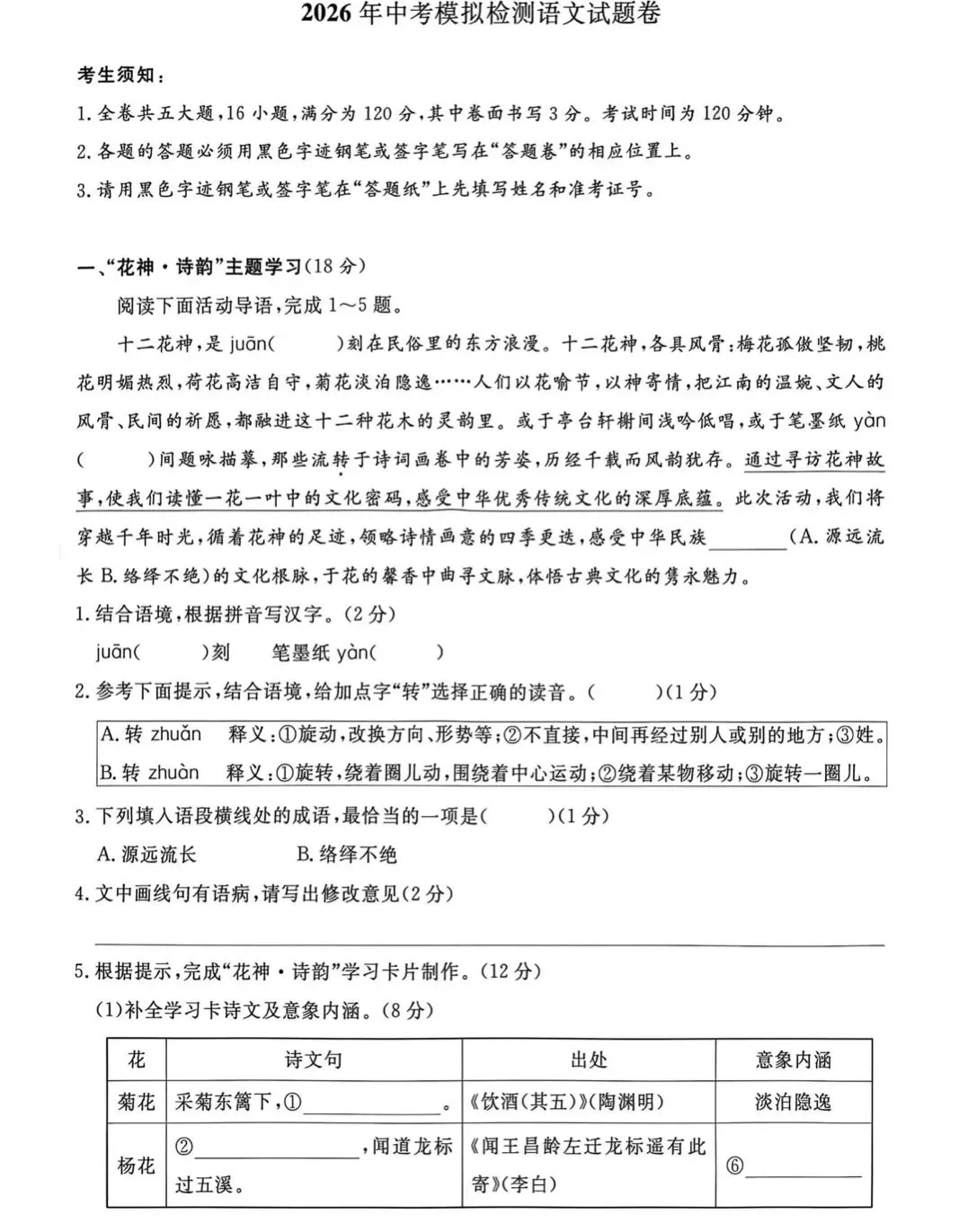 2026年中考模拟测试语文试卷