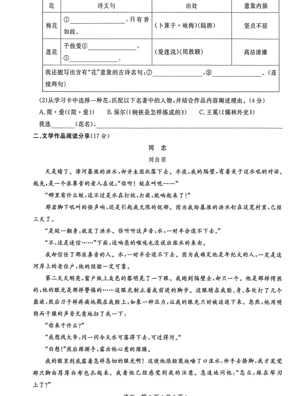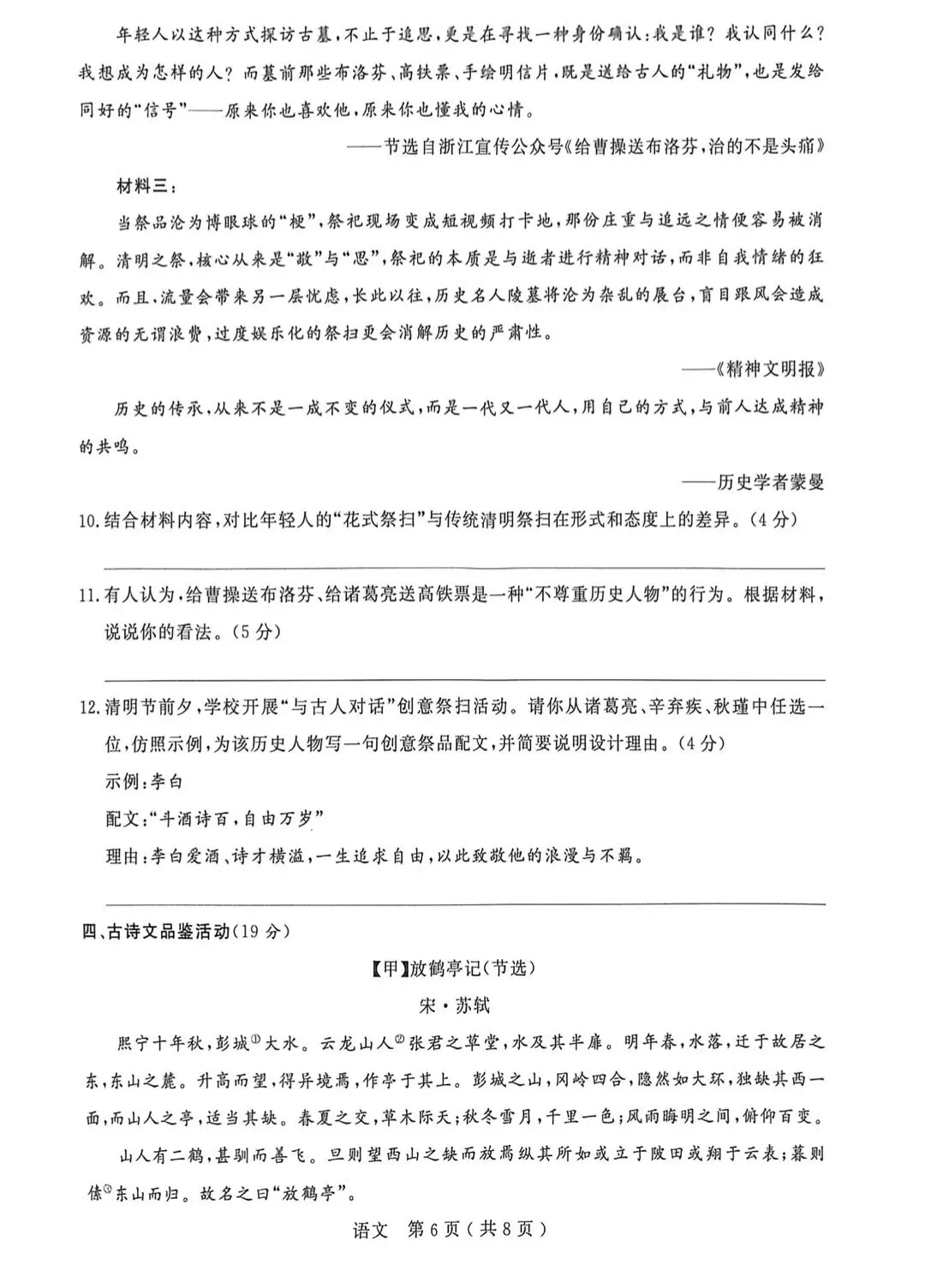 2026.4浦东东南片六下期中语文试卷