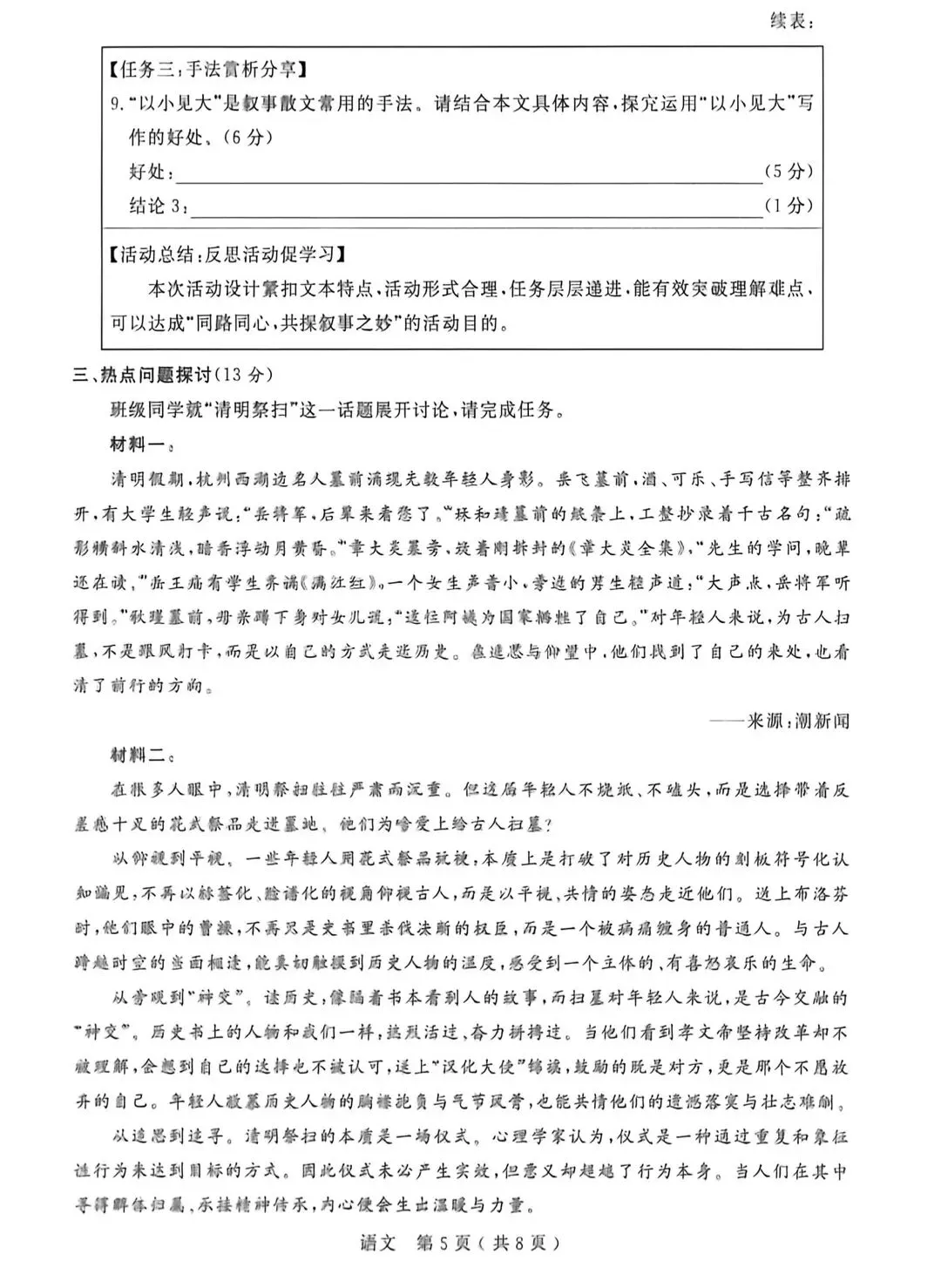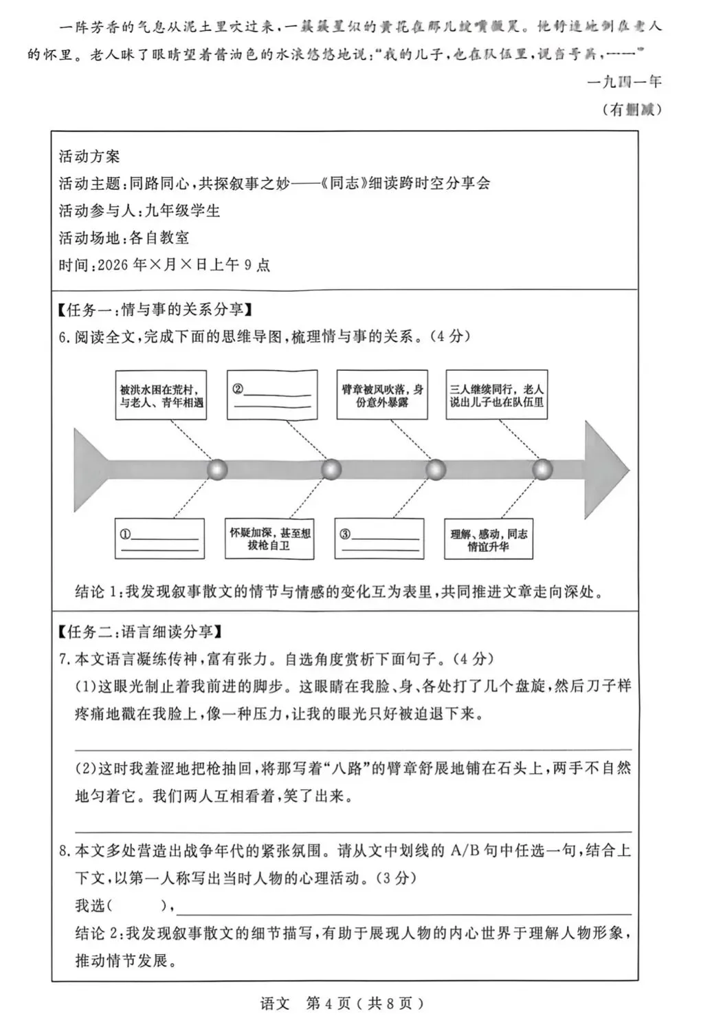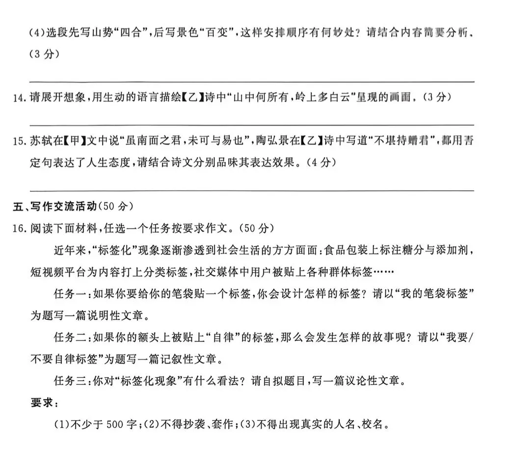 2026年温州九年级学生语文学科素养检测卷