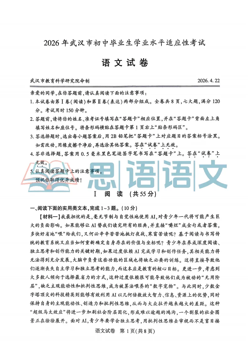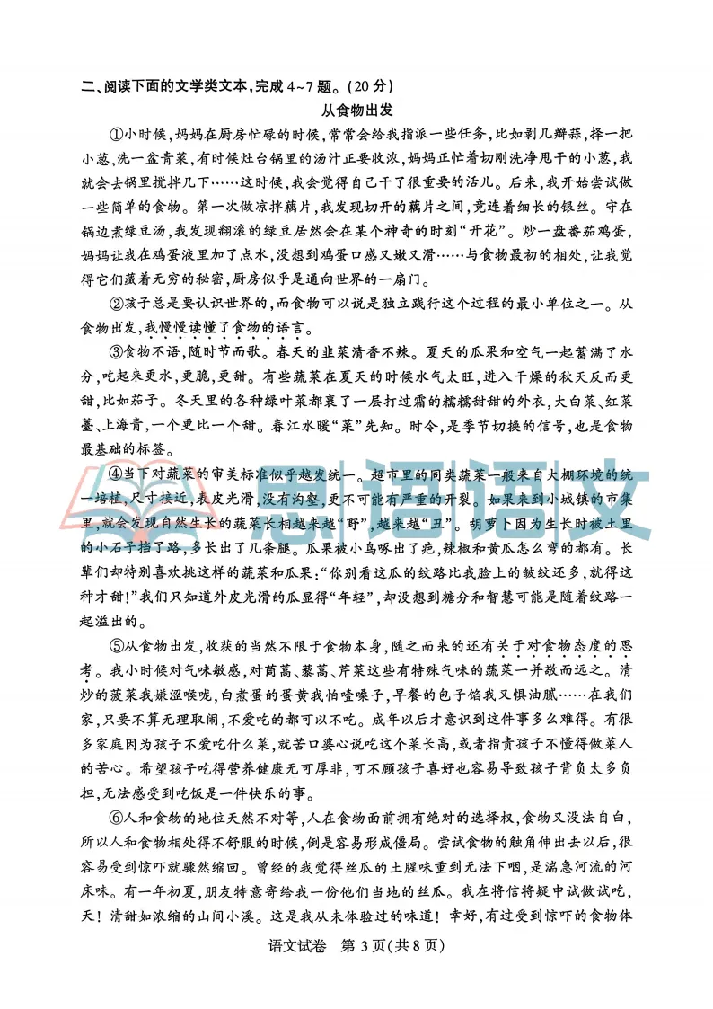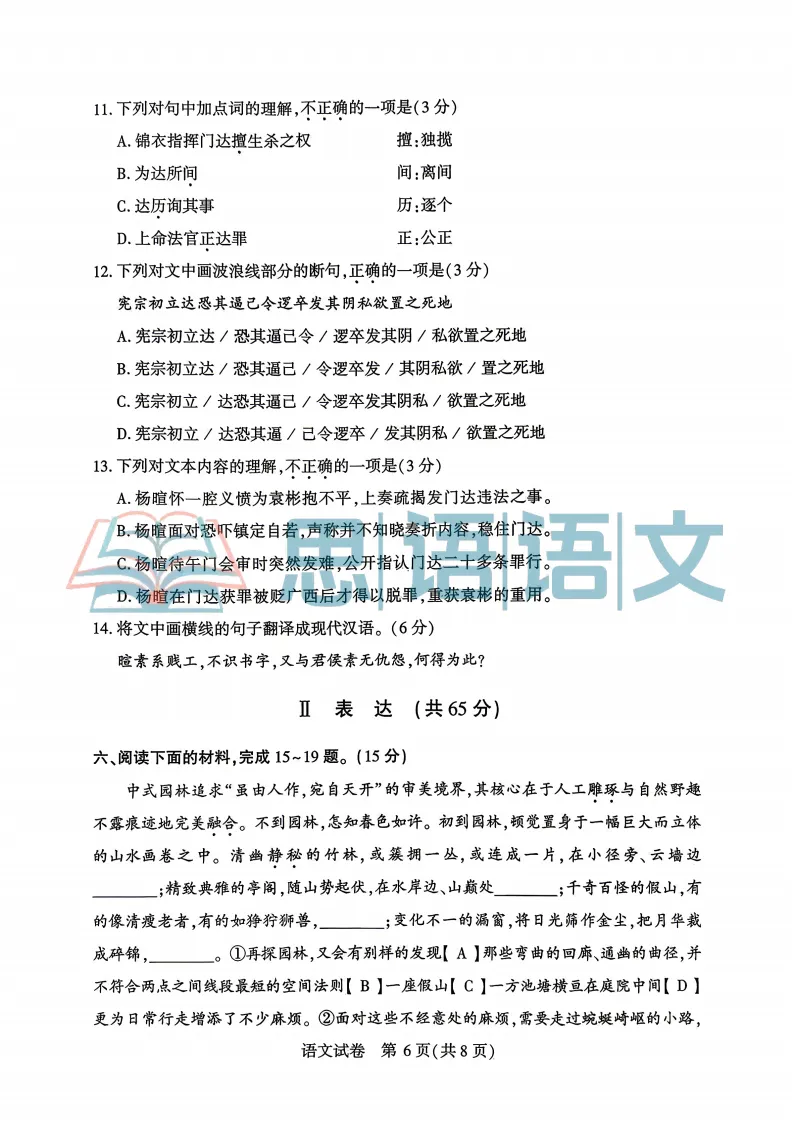 2、【试题分享】2026语文阅读语意片段训练一(25篇)