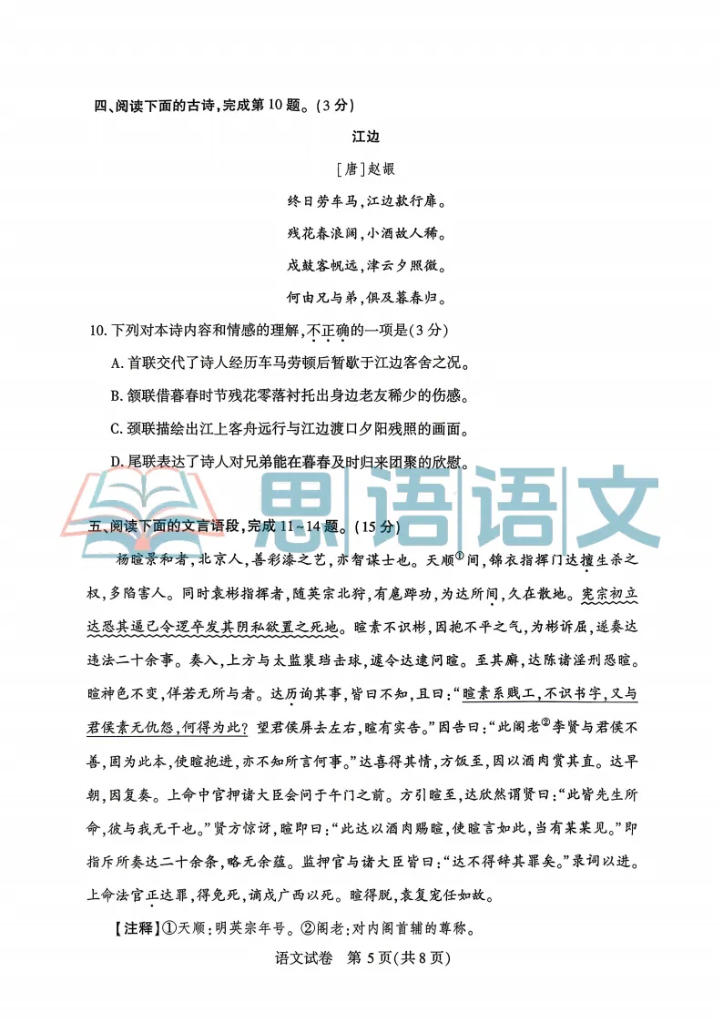 5、【试题分享】九年级诗词专题训练(50篇)