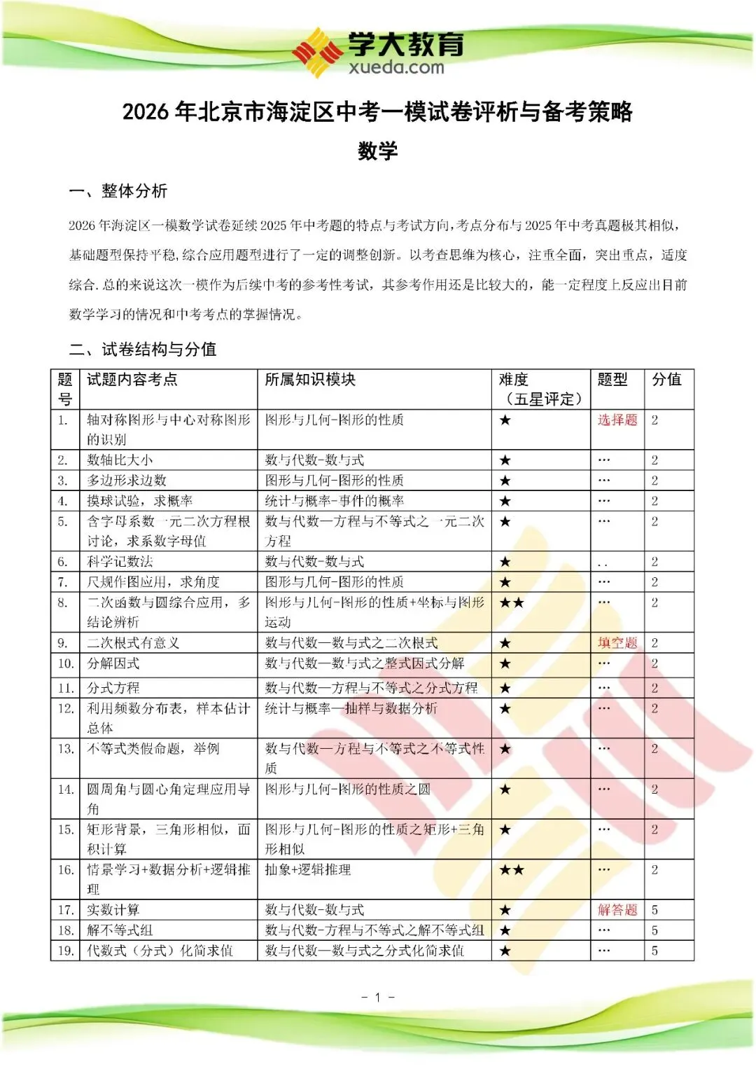 >2026海淀初三一模数学试卷评析出炉,一起看看吧!