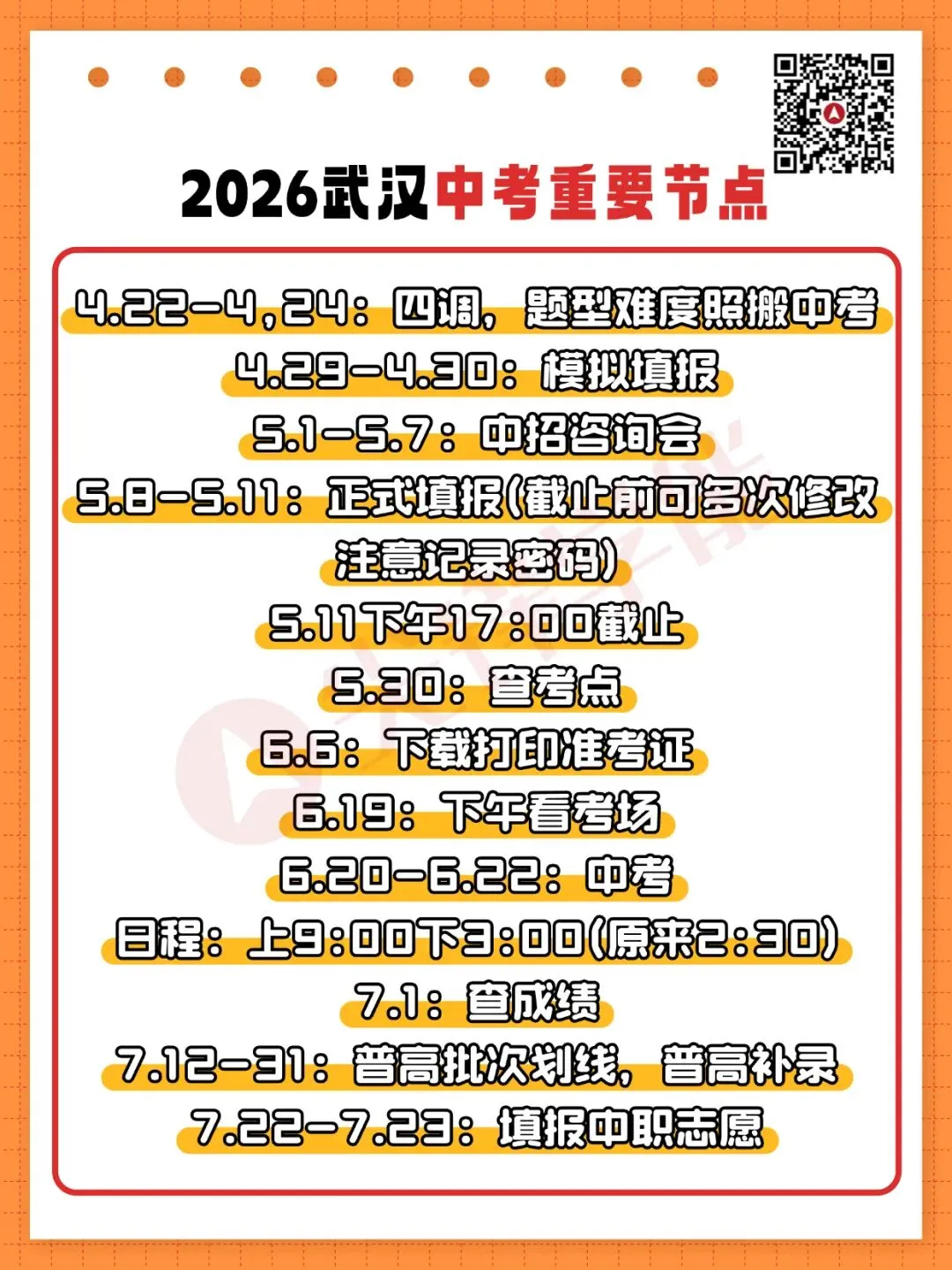 2026武汉中考重要节点