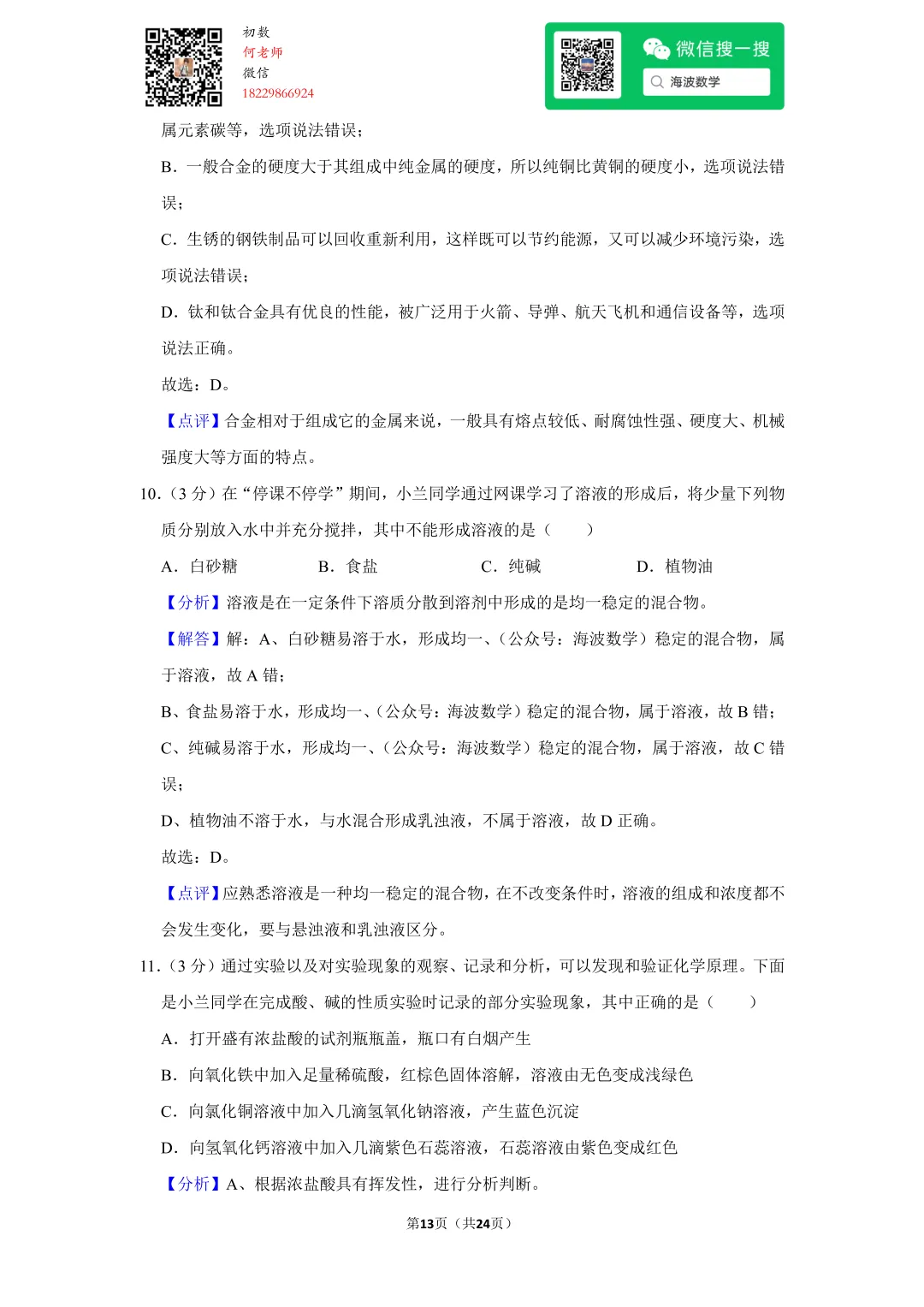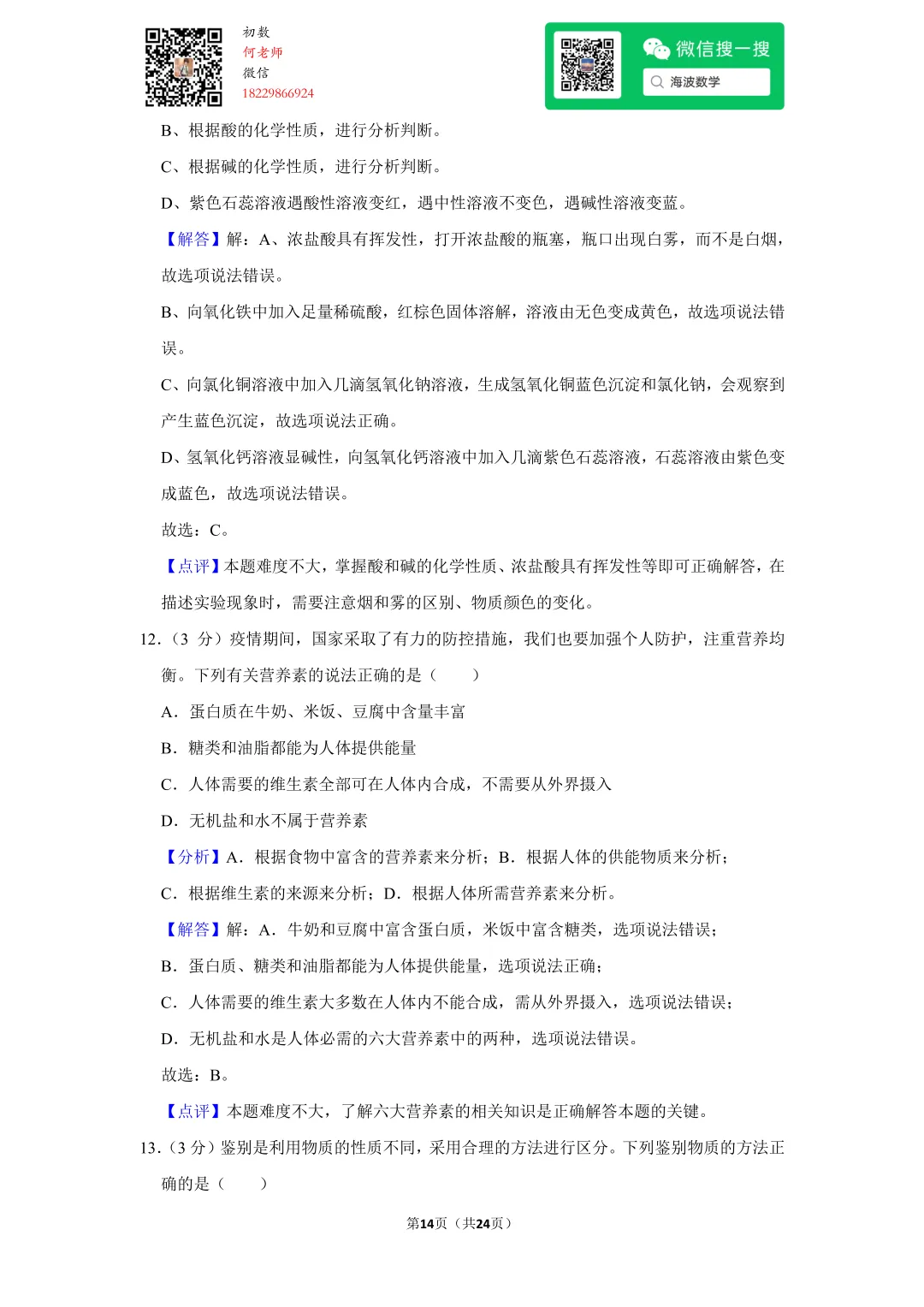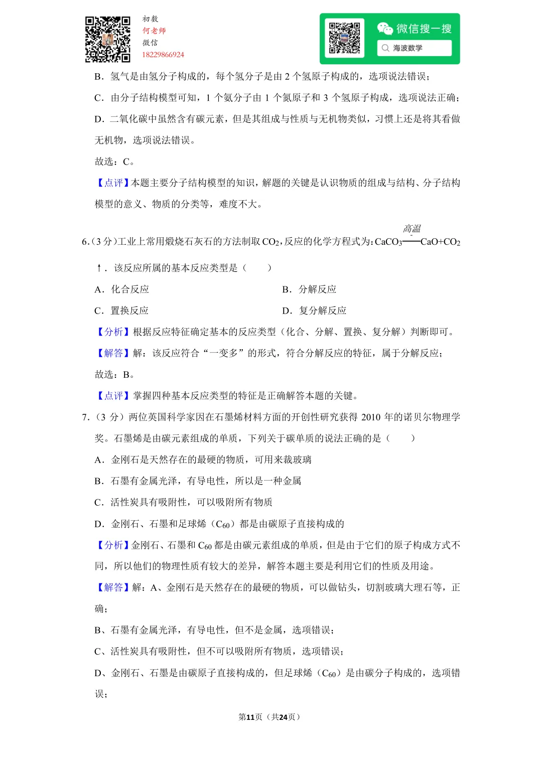①扫码添加何老师微信进对应年级资料分享微信群