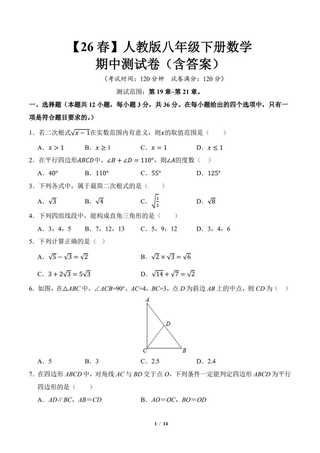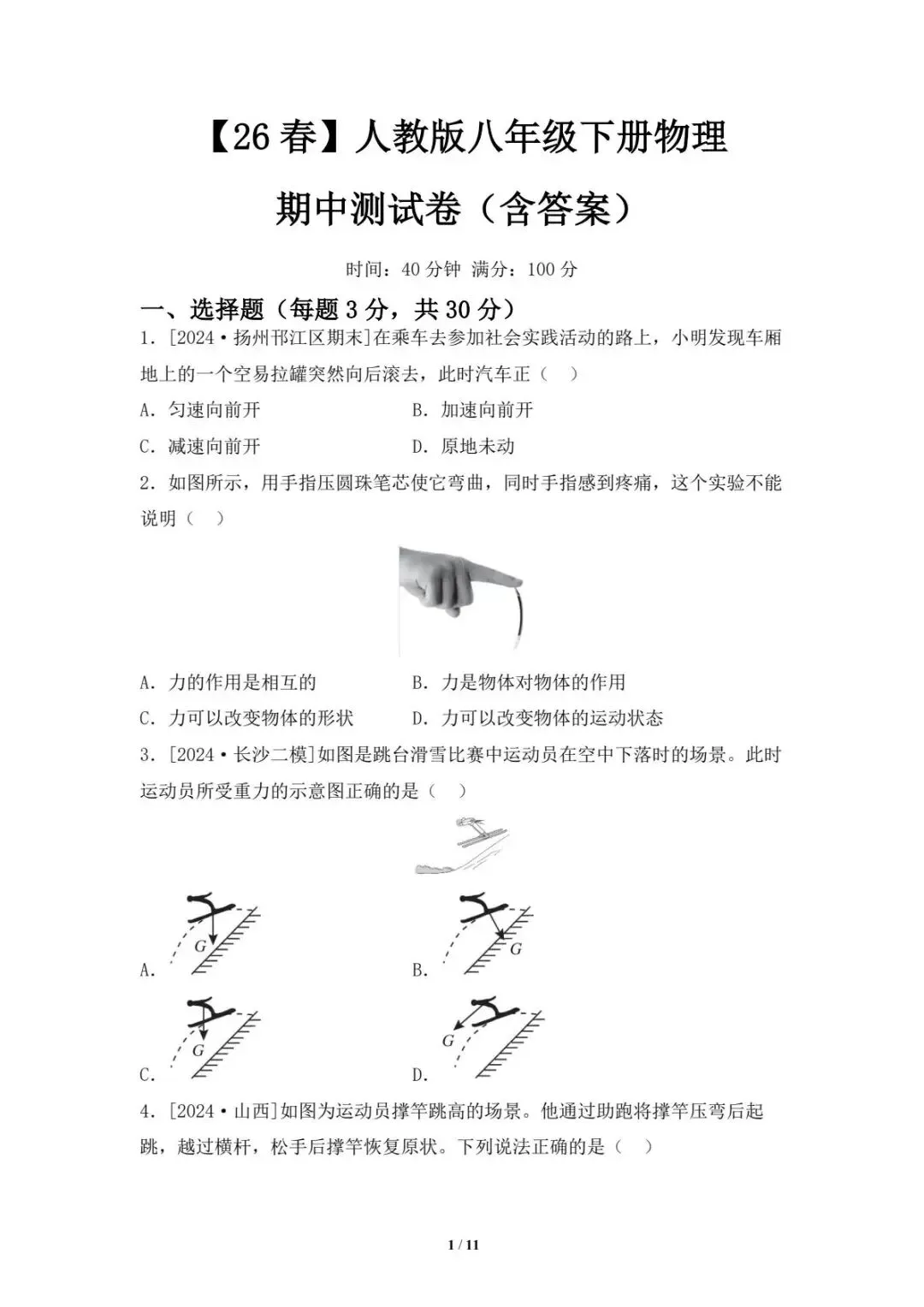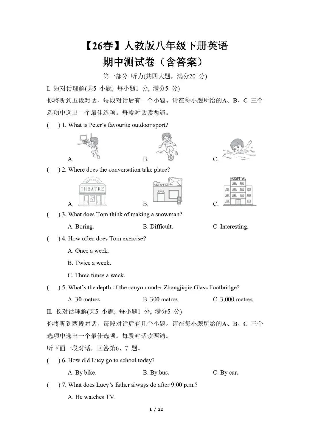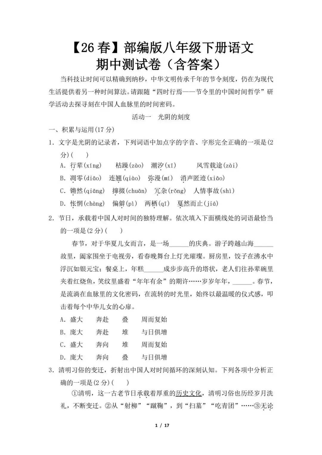 2026春下学期八年级全科《期中试卷及答案》