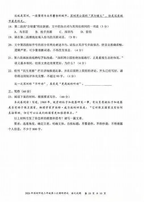 深二模今天开考,语文作文已出,听说很难!大家觉得如何?具体题目如下: