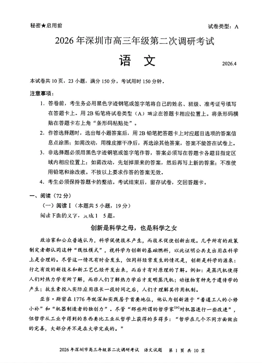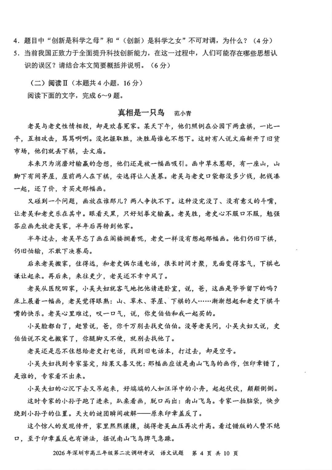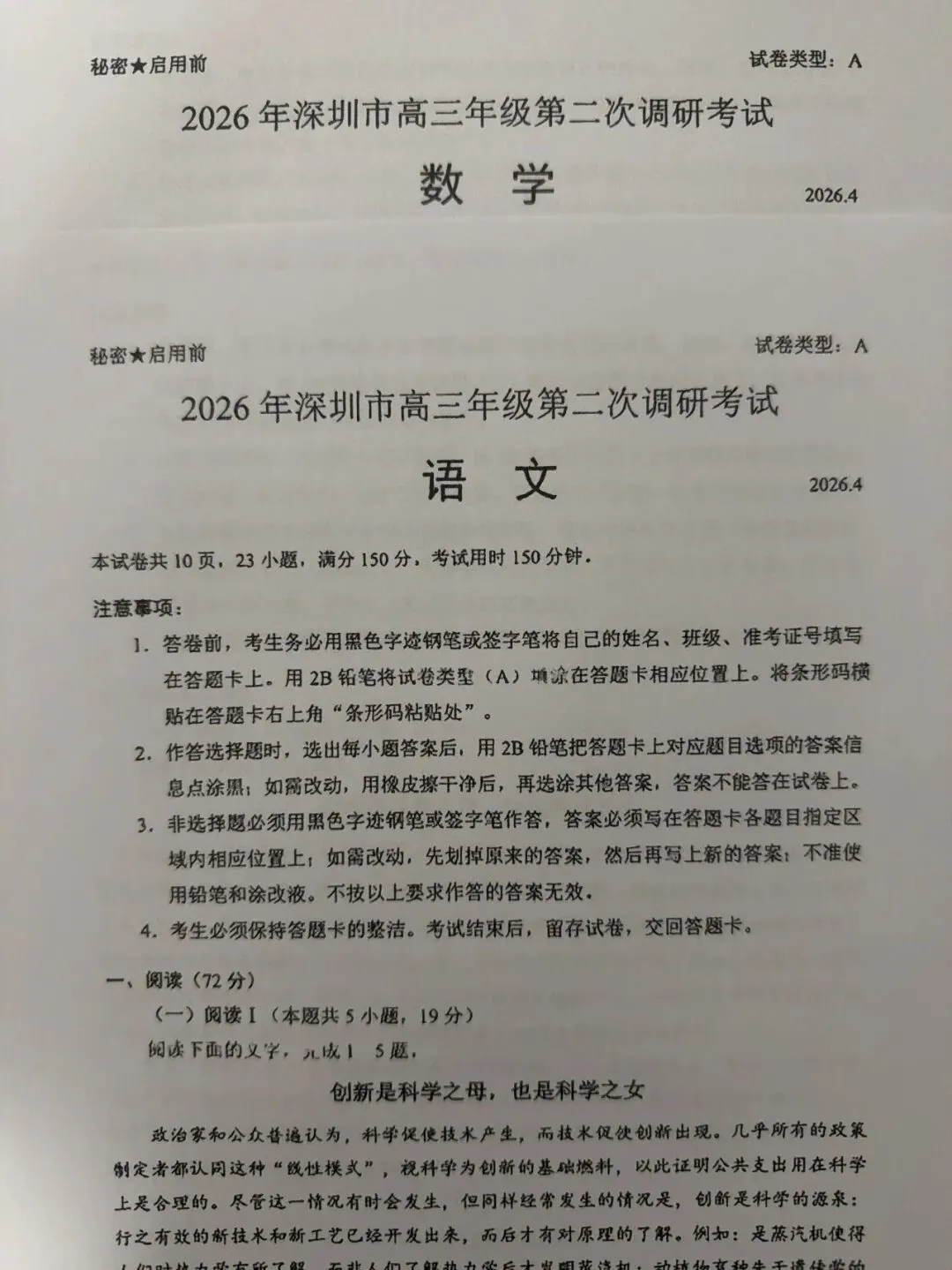 考试名称:2026年深圳市高三年级第二次调研考试
