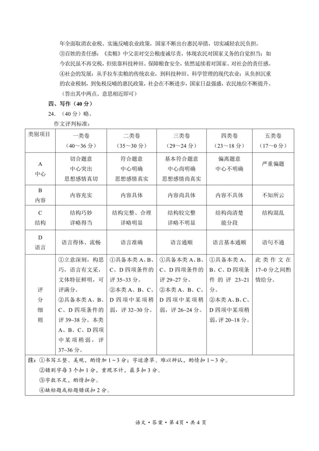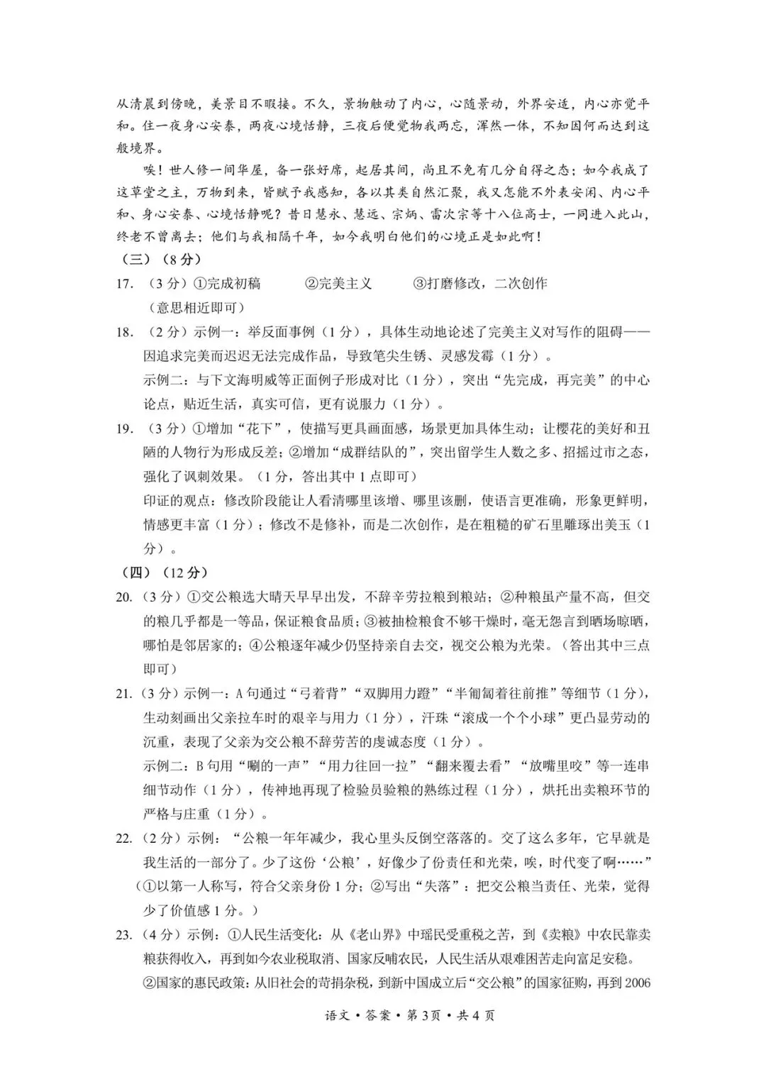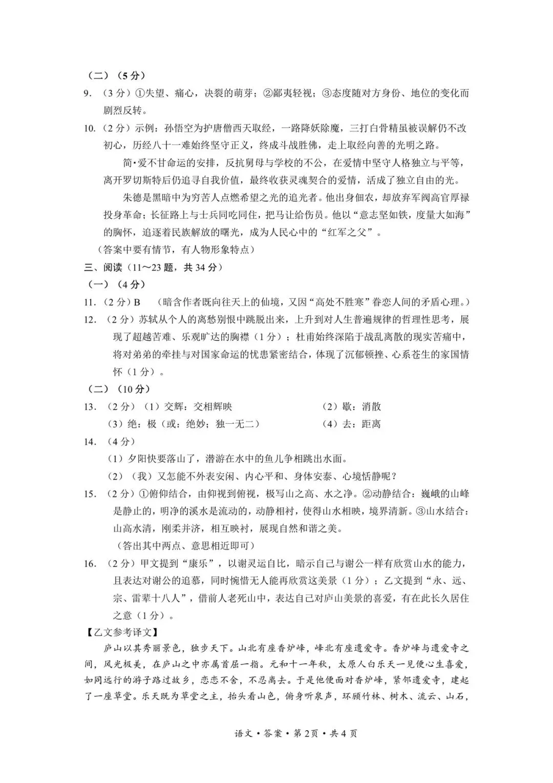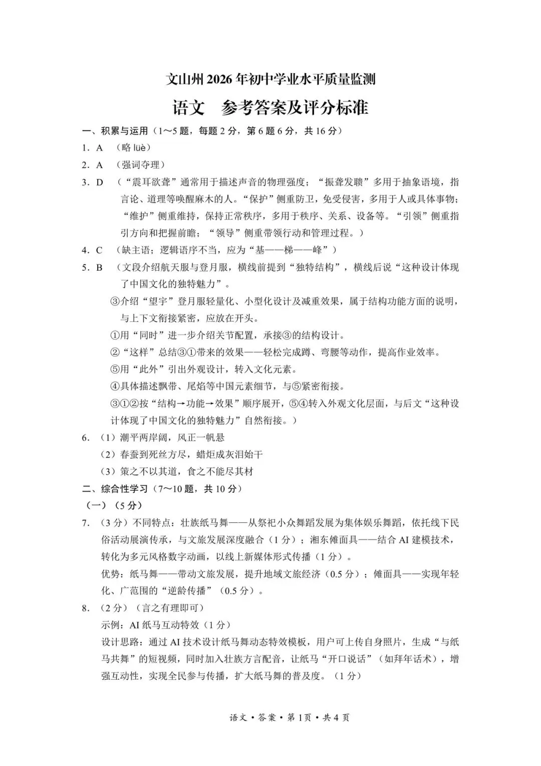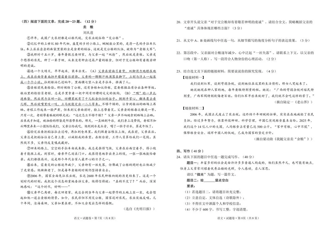 文山州统测语文试卷+答案