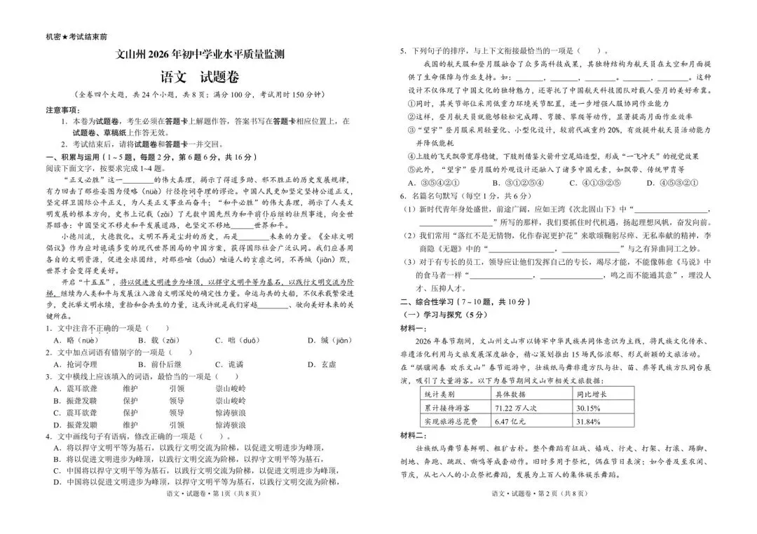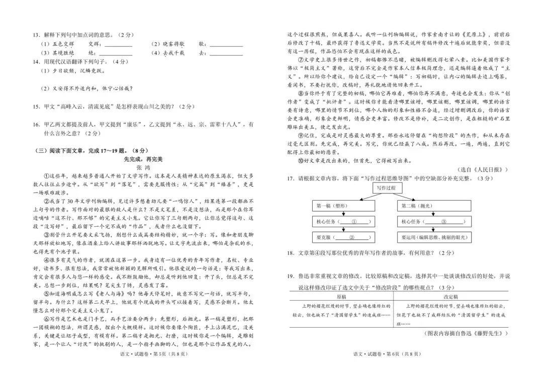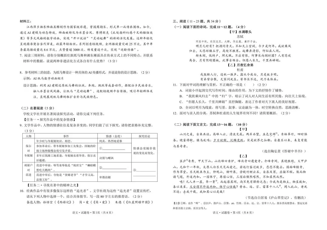2026年初三语文8区二模试卷word版(网盘自行保存)
