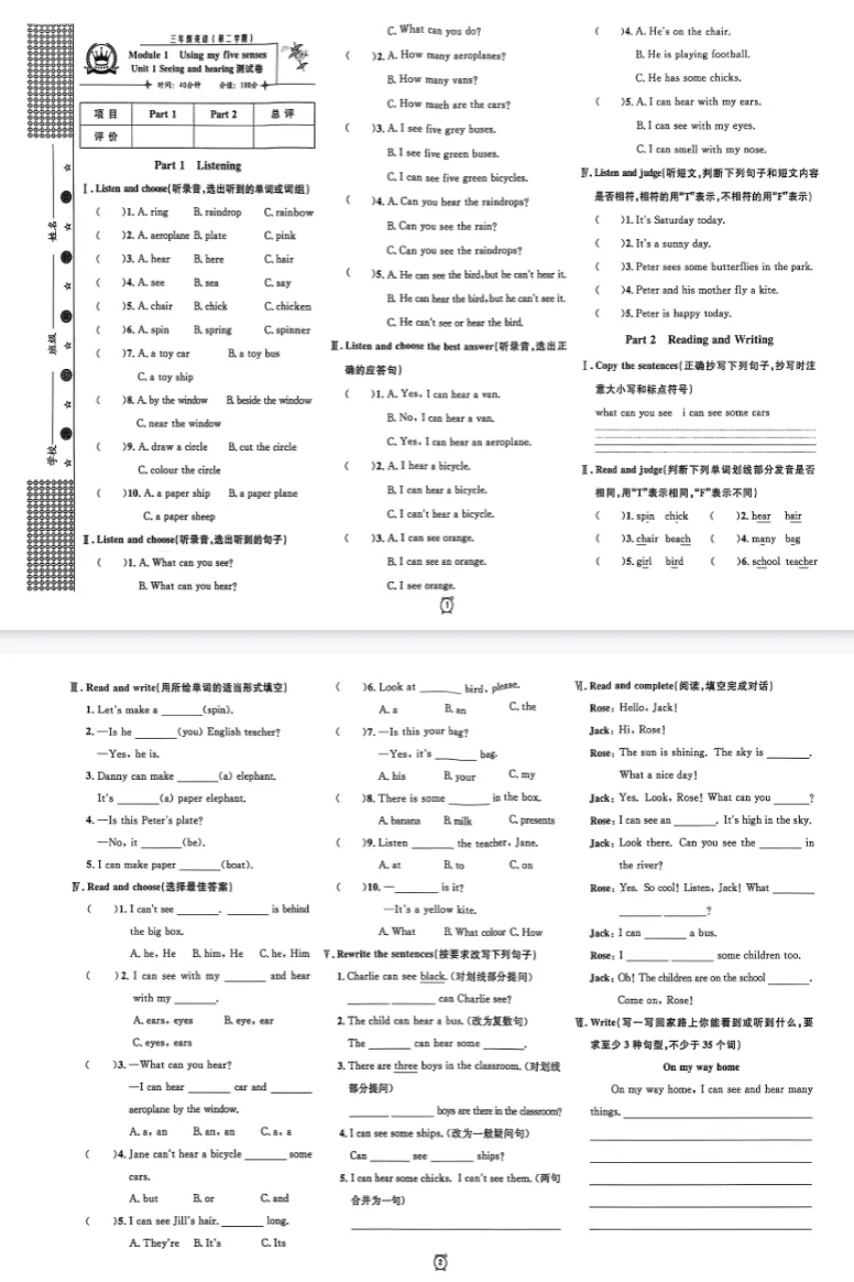 金试卷:语数英三科汇总