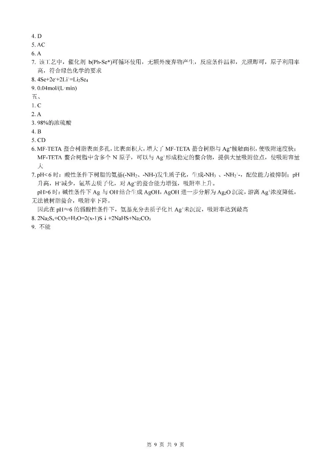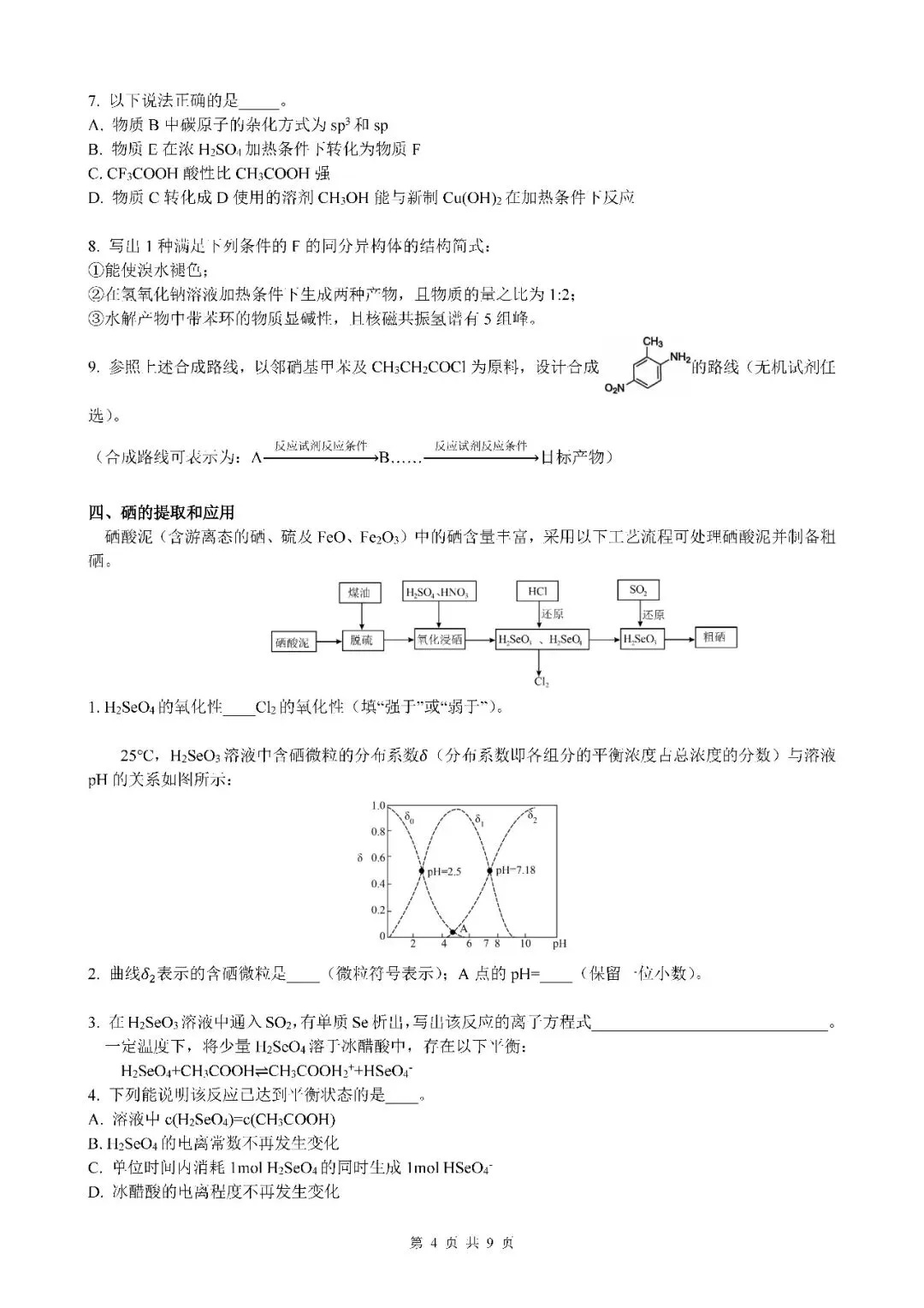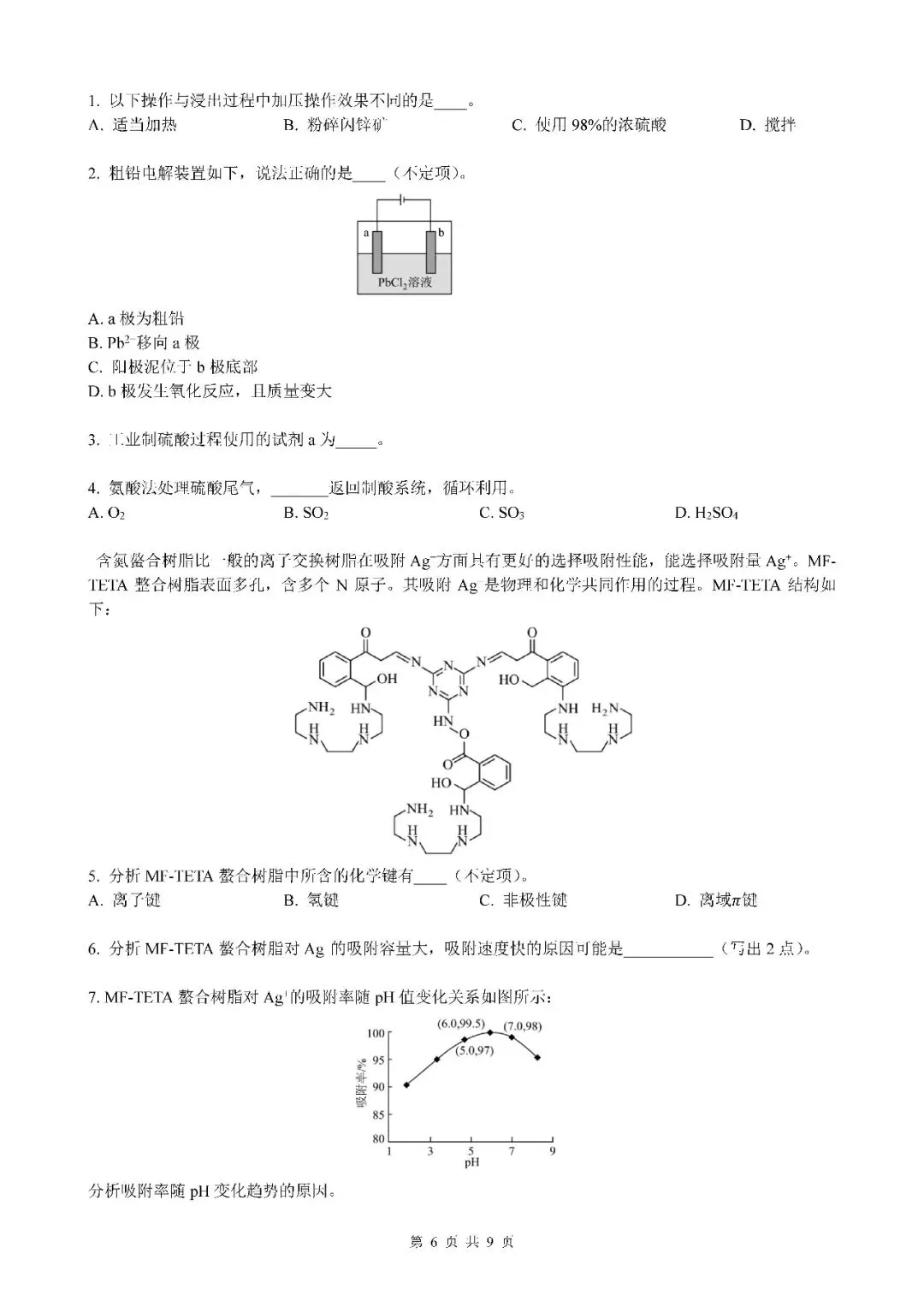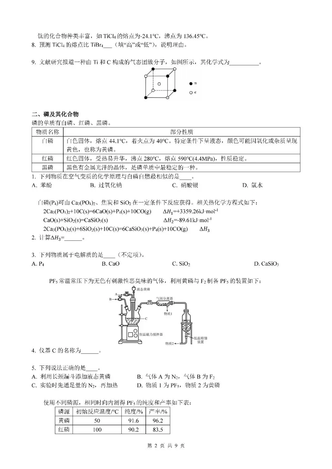 2026届上海市嘉定区高三二模化学试卷(含答案)