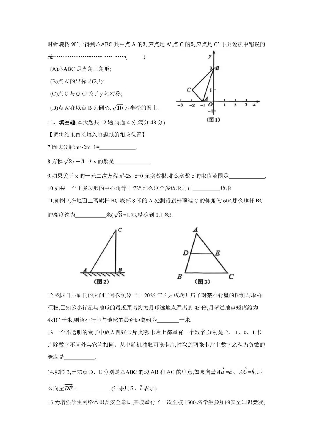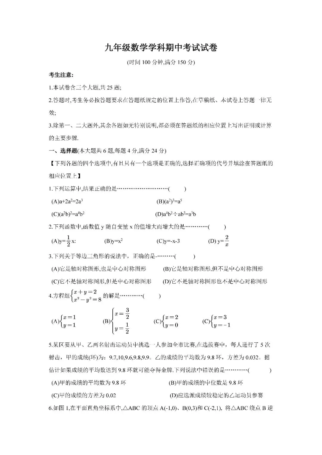 河师大附中初一联考试卷,题简单但这次不是高分局