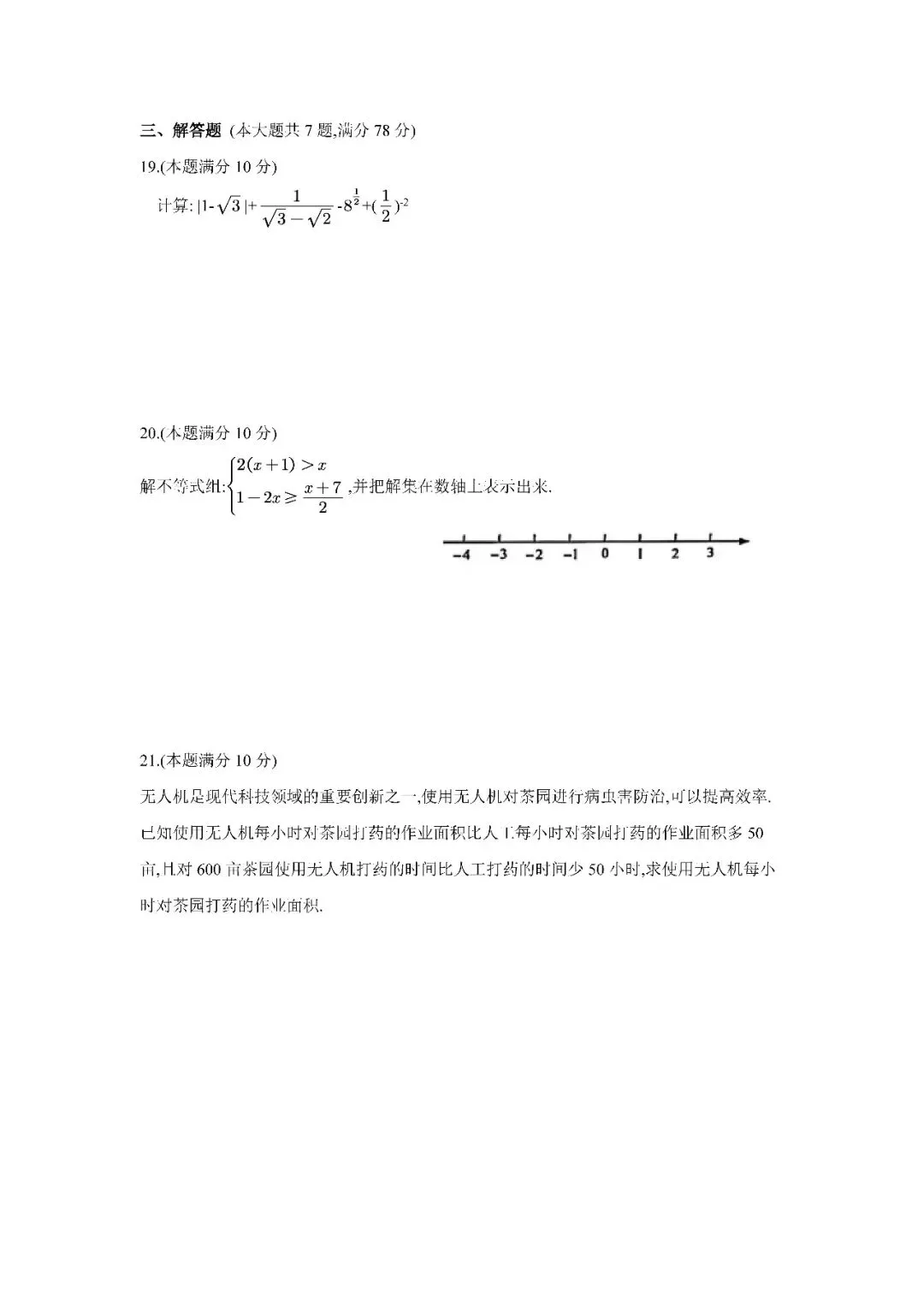 新疆三校生升高职考试 2021年数学真题