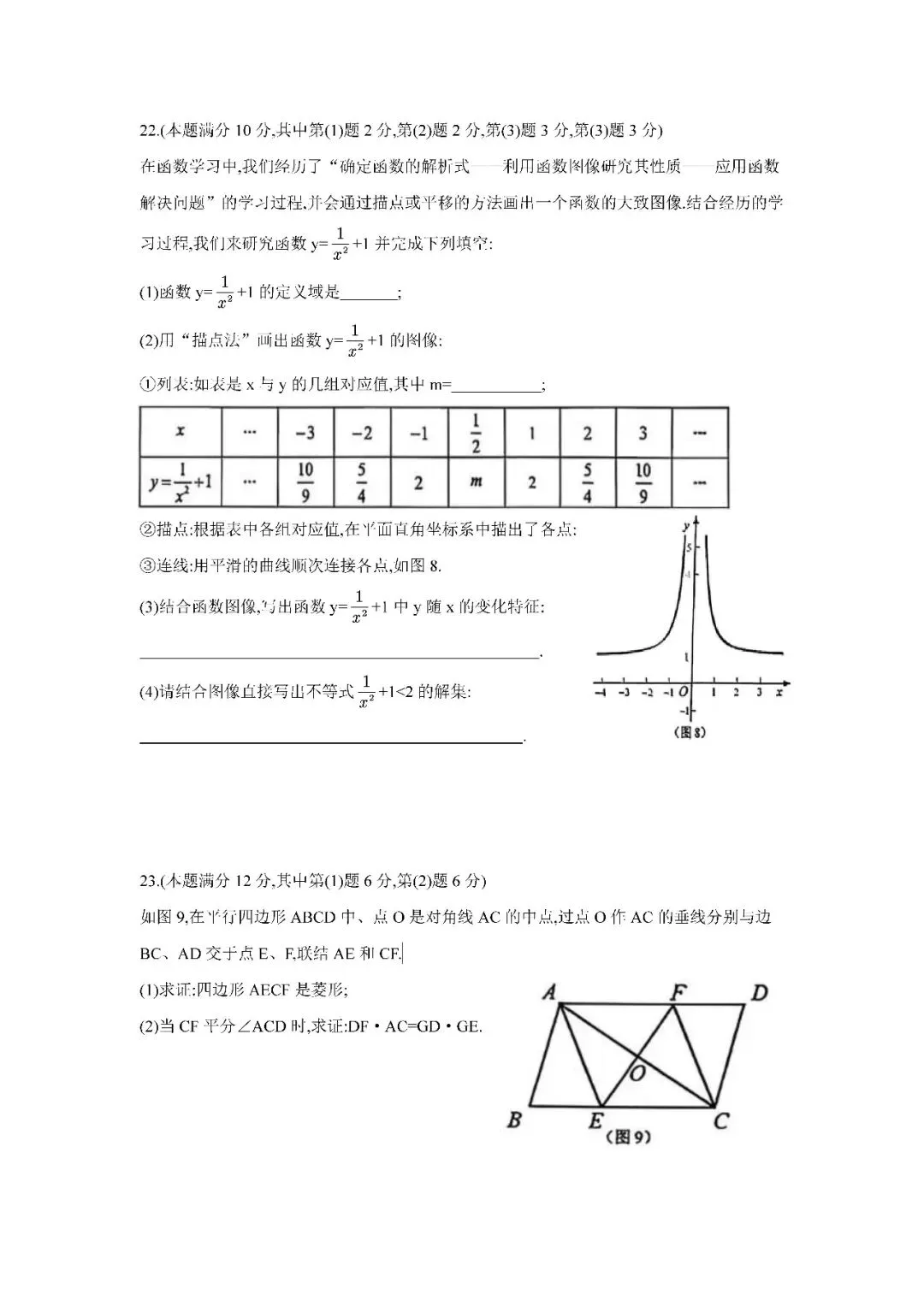 >2026届上海市嘉定区初三二模数学试卷(含答案)