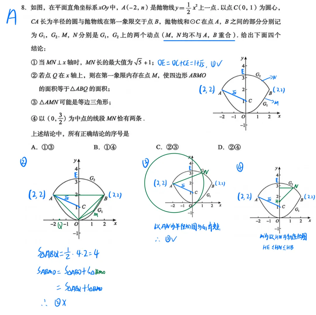 命题特点:前6题纯基础,第7题考几何直观,第8题重思维与数形结合。