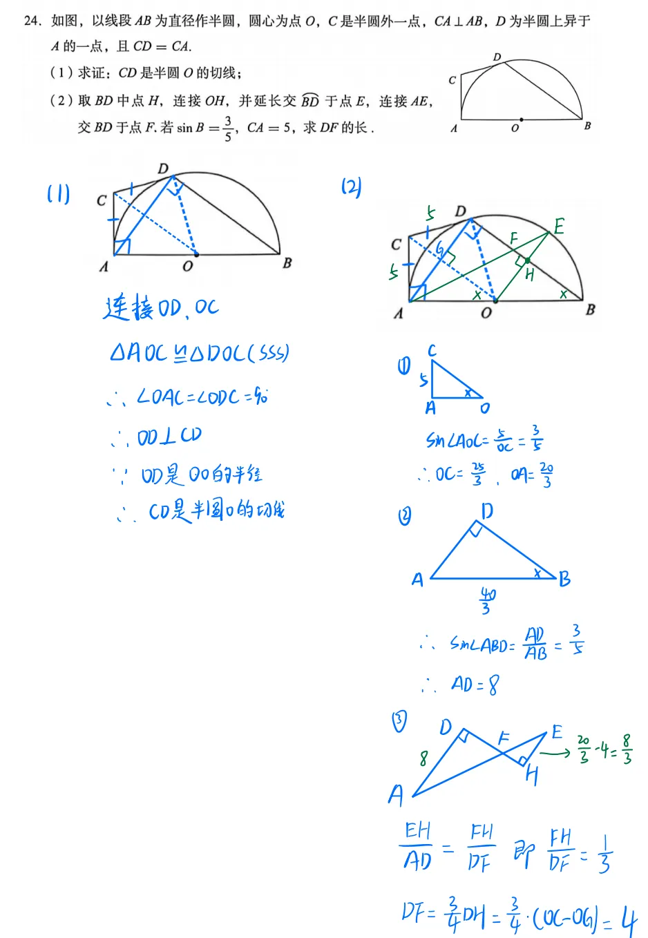 难度分布:1-6基础送分 → 7中档 → 8难题(函数+圆综合)