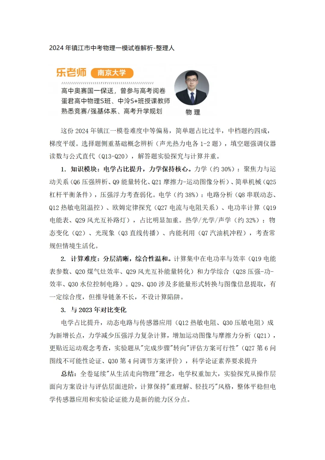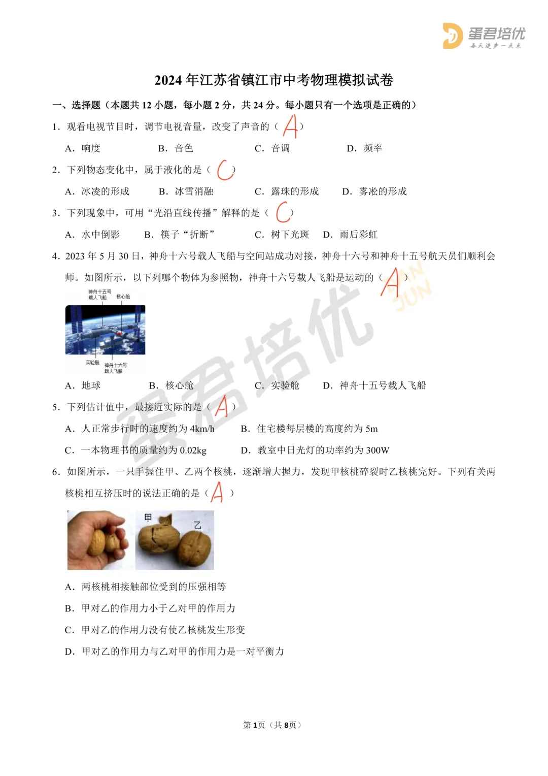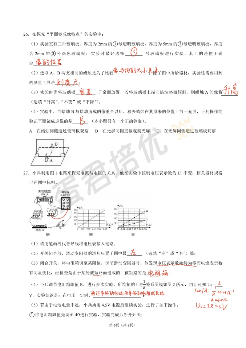 2026届上海市嘉定区初三二模物理试卷(含答案)