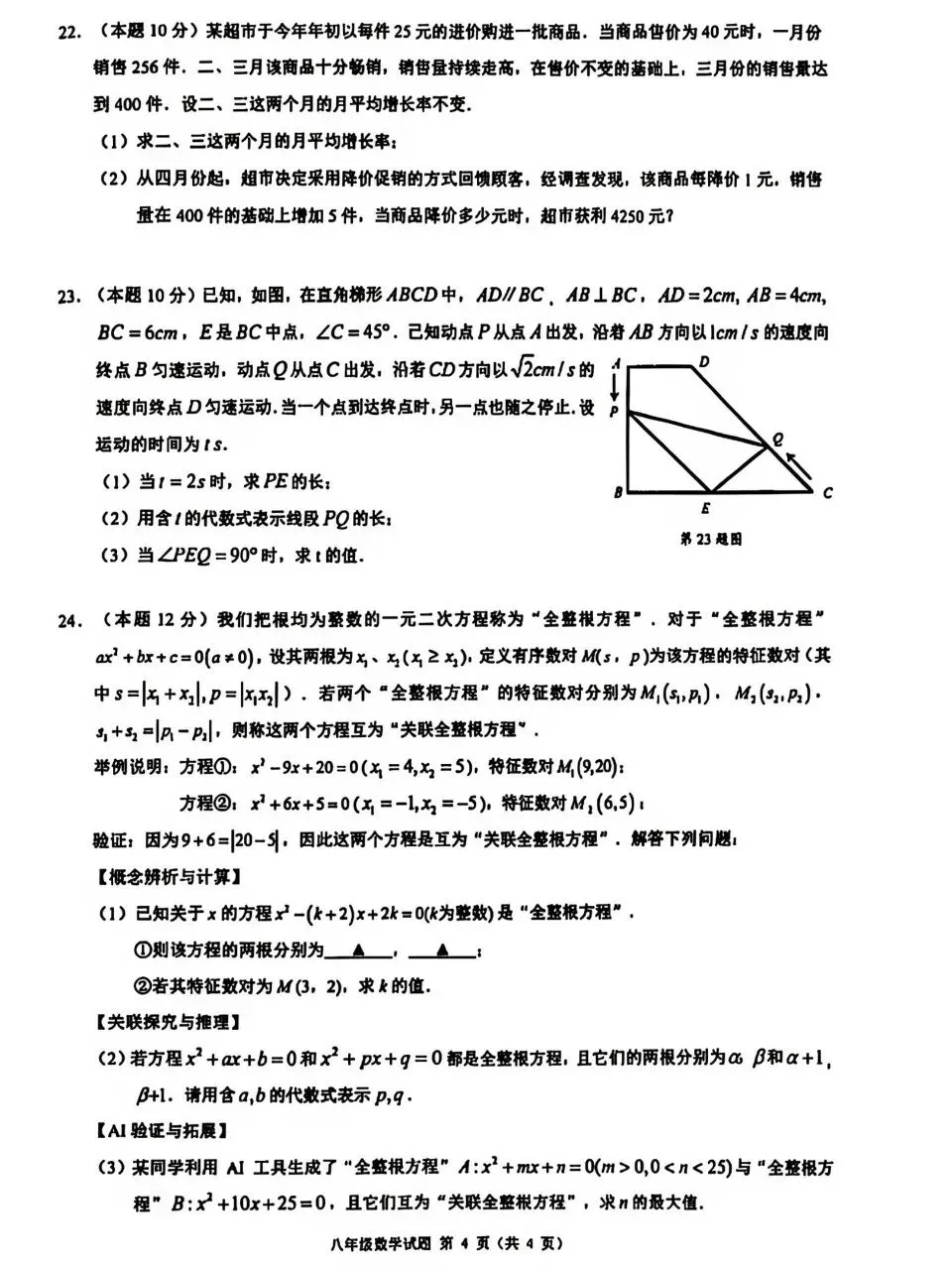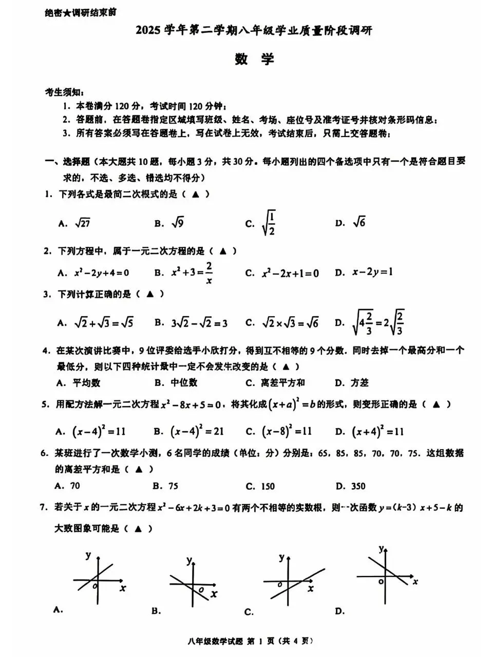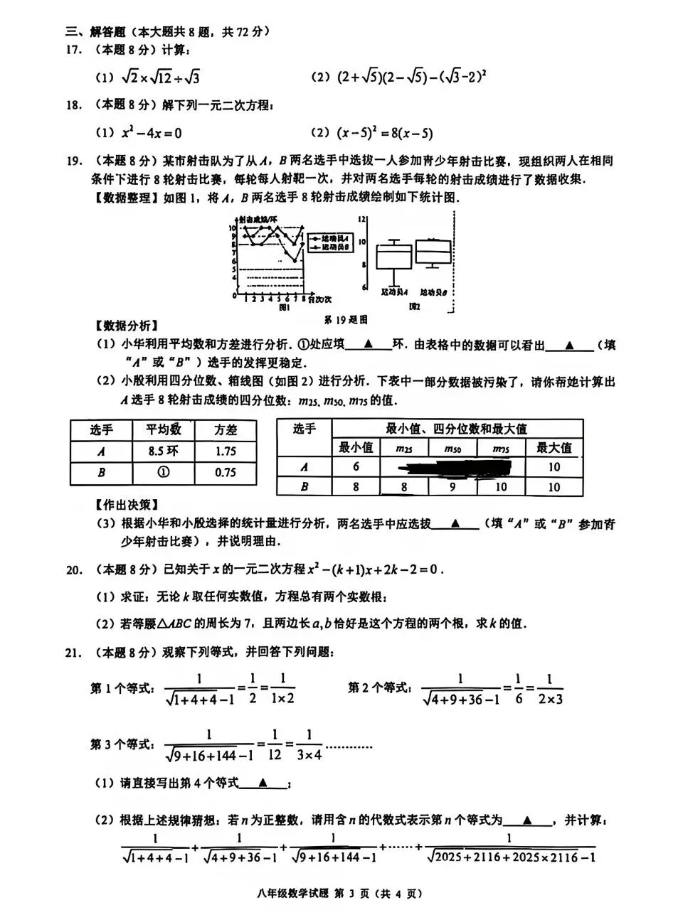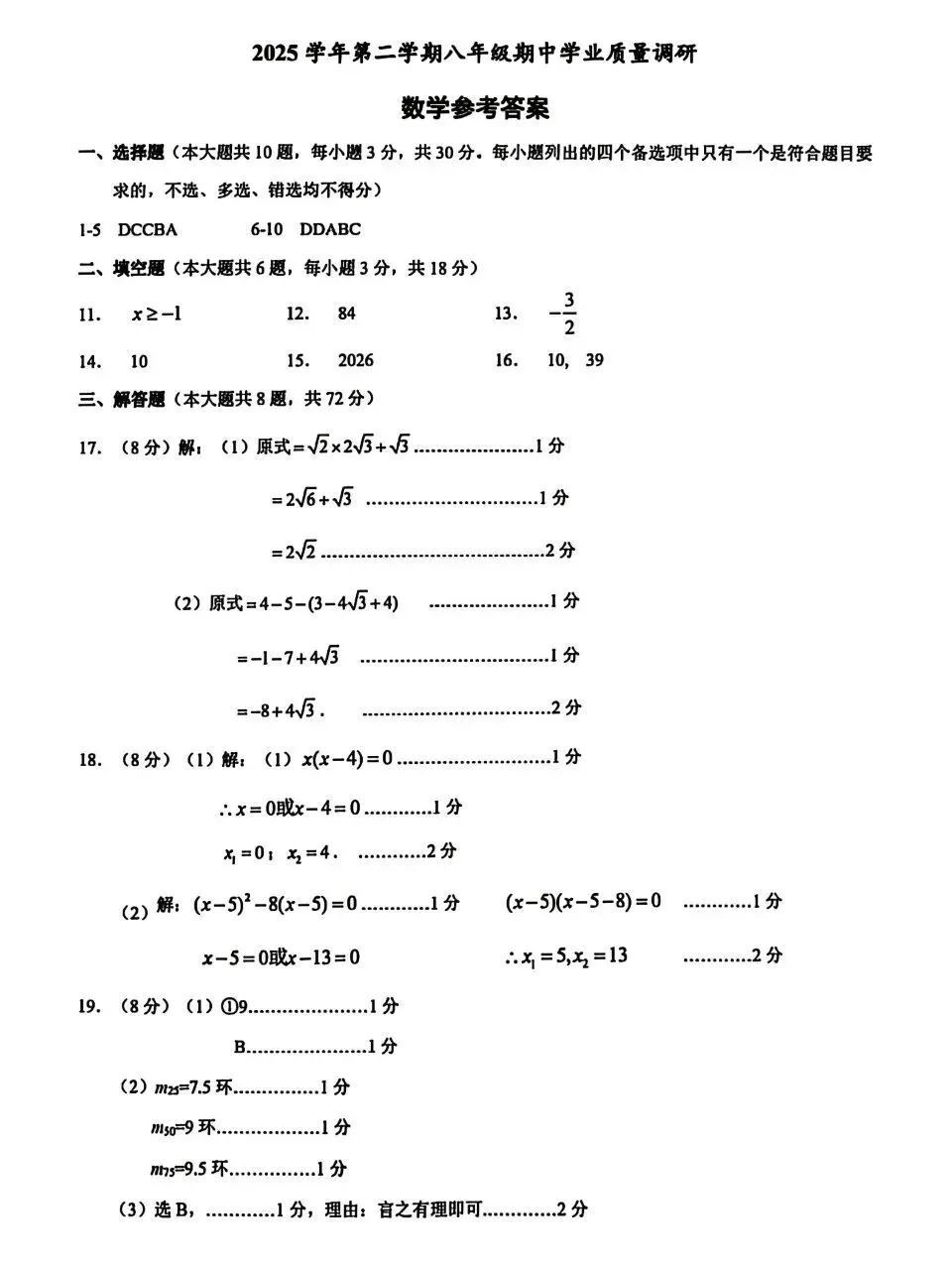 【八下期中试卷】2024-2025学年河南省实验中学八下期中试卷分享