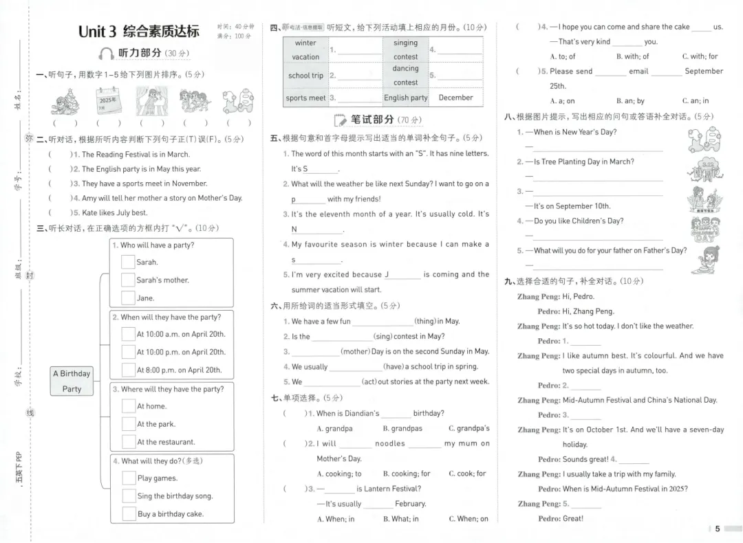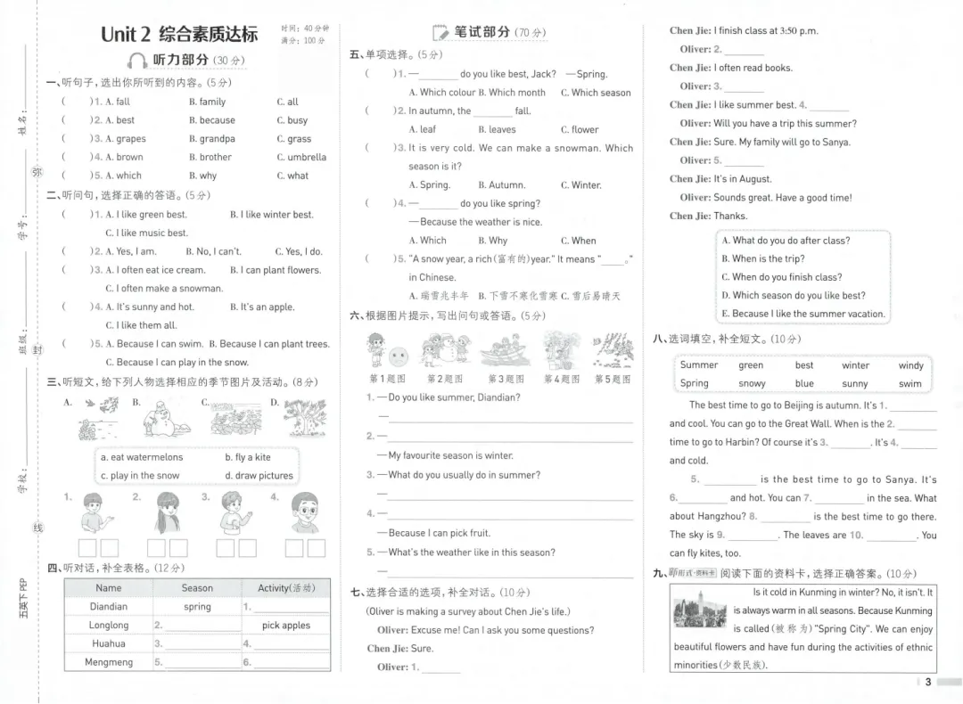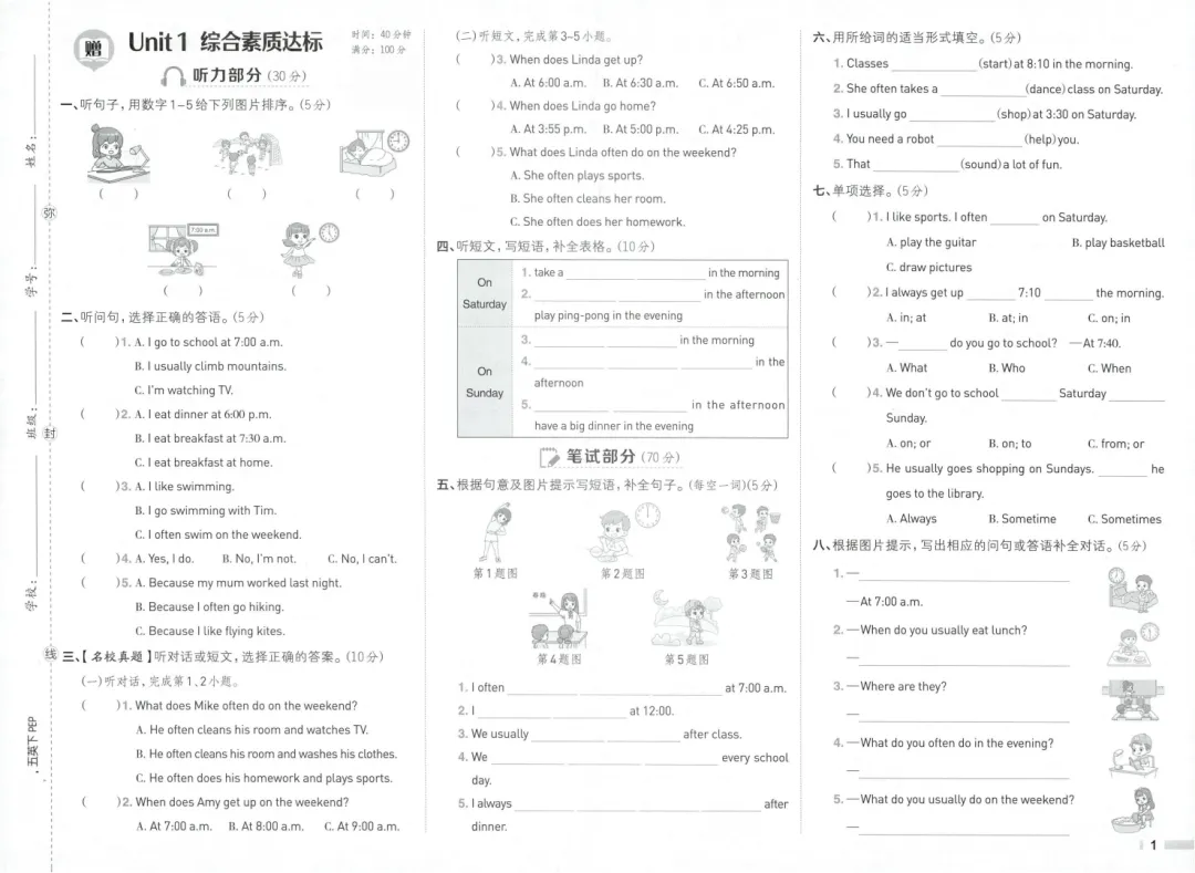 为大家更新了最近超火的学习资料26春新版五年级下册人教pep版英语1-6单元综合素质达标卷+期中综合素质达标卷+期末综合素质达标卷,有听力+答案,文末下载题型丰富,非常适合孩子练习,为下学期的学习奠定基础,有需要的家长快给孩子们打印练一练,及时查漏补缺吧。建议分享到班级群/年级群,让其他家长打印出来,帮助孩子学习!(温馨提示:资料为高清文档,因篇幅限制,仅展示部分内容,文末有完整高清电子版领取方式)