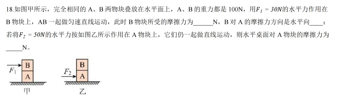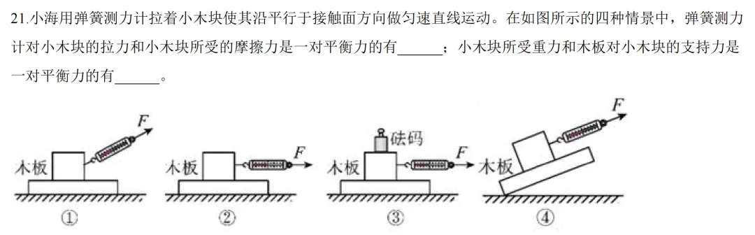 29题,考滑动摩擦力影响因素,第4问简单整体隔离法,最后一空考滑动摩擦力大小与压力大小成正比。