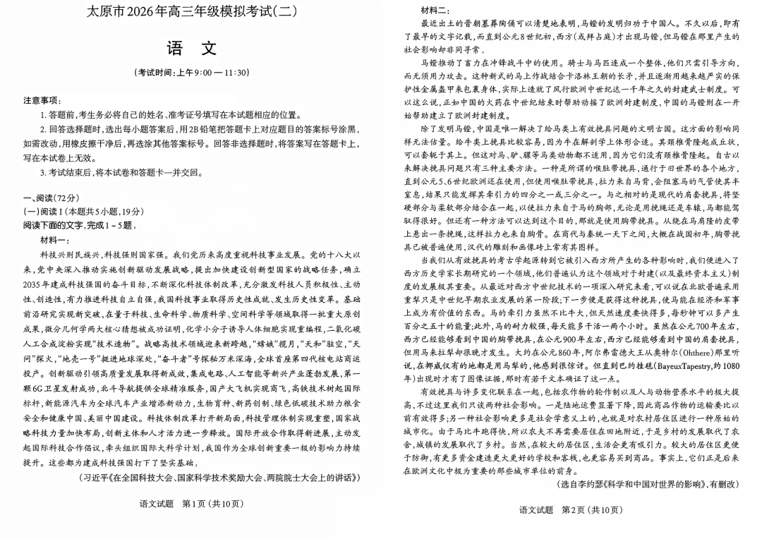 >2026年太原市高三二模语文试卷及答案
