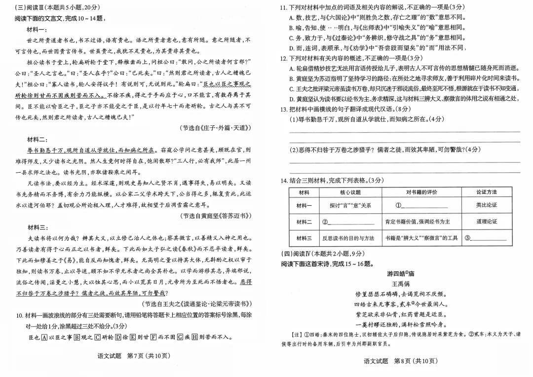 2026年太原市高三二模语文试卷及答案