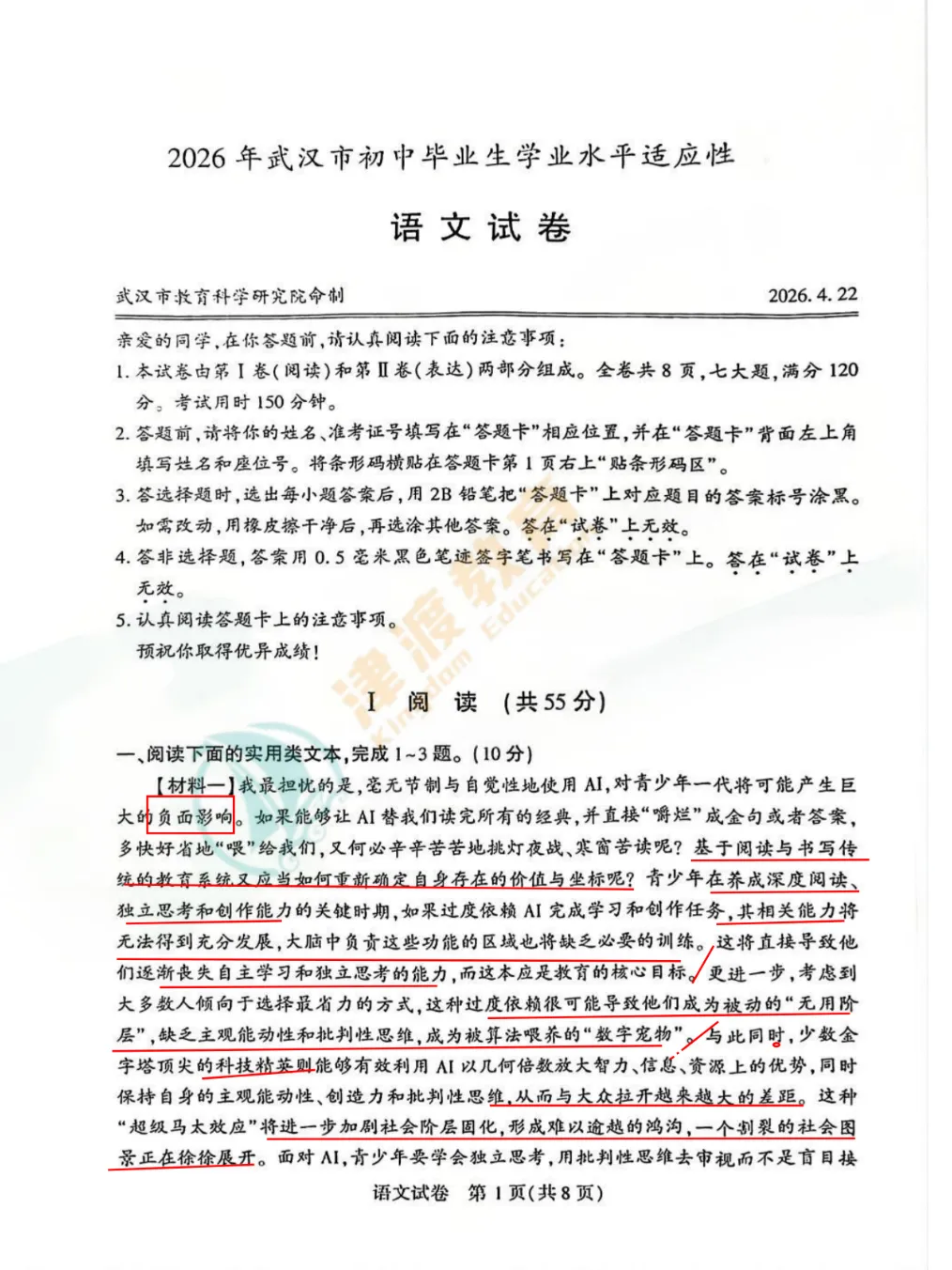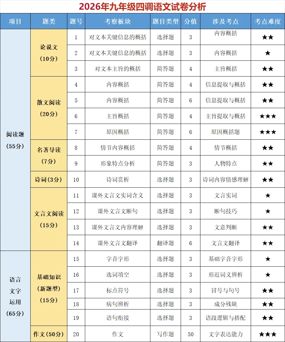 >2026武汉初三四调语文试卷分析!