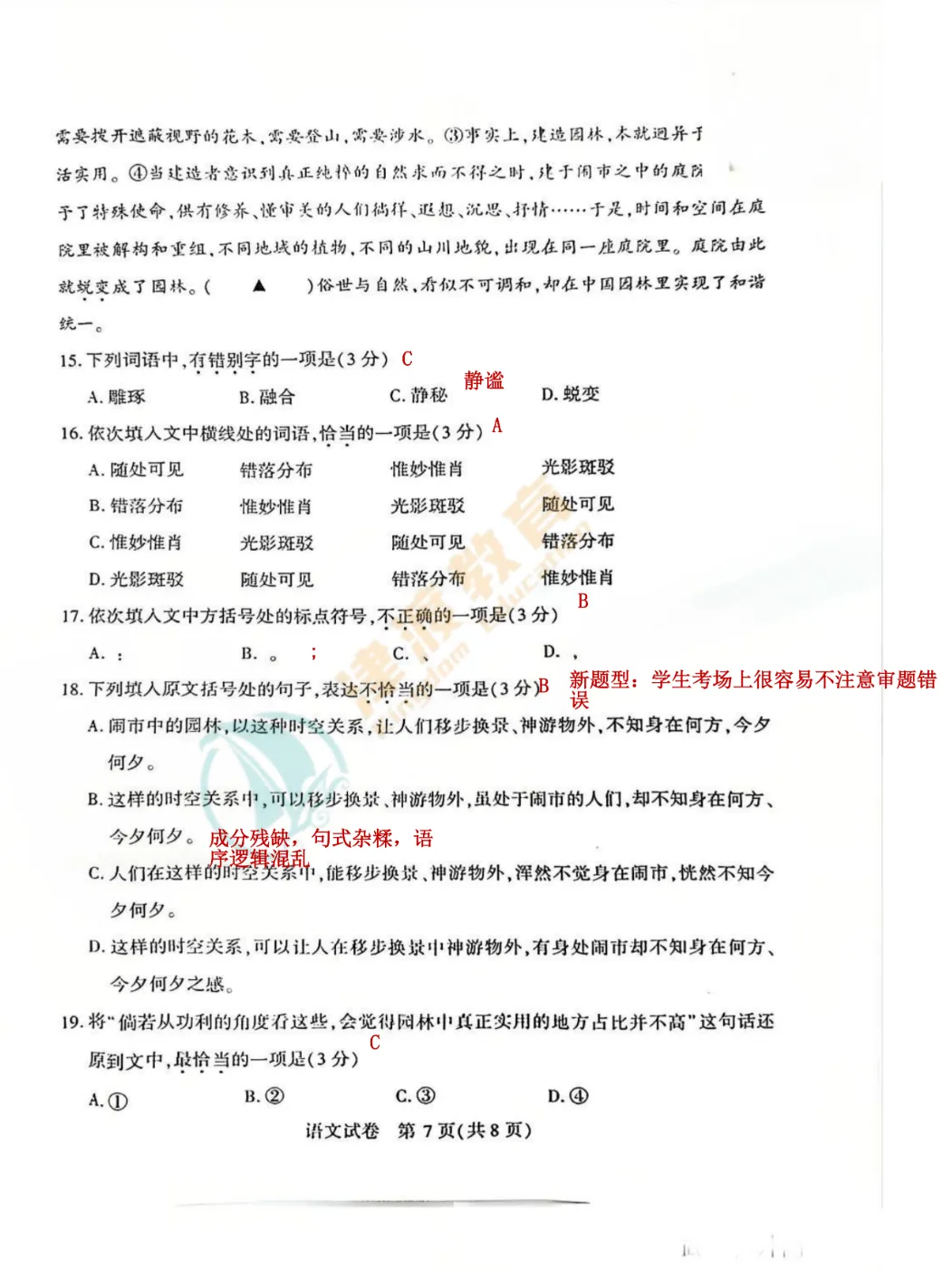 武汉初三四调今日开考,语文试卷出来后,邀请津渡柳老师带来独家解析!