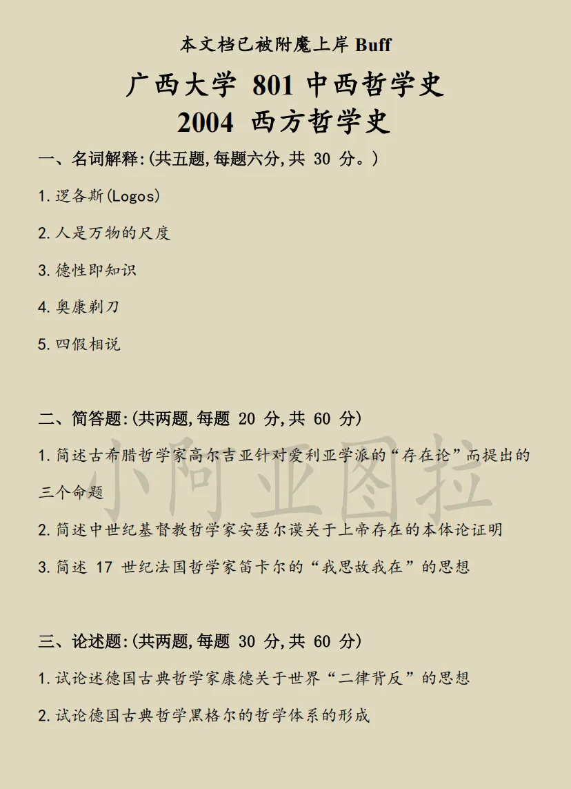 广西大学哲学考研历年真题:2004-2026