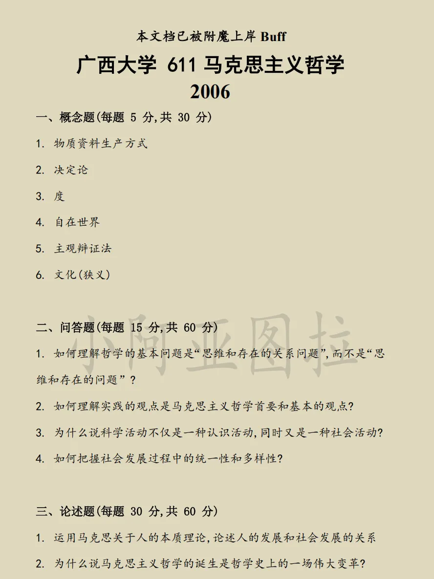 611马克思主义哲学:2006、2007、2017、2018、2020、2024、2026