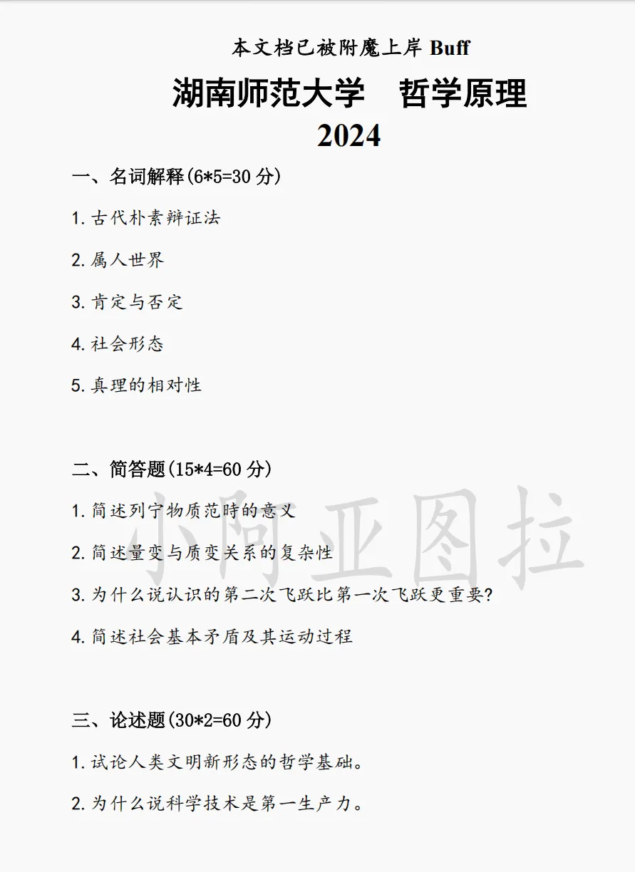 >湖南师范大学哲学考研历年真题:2004-2026