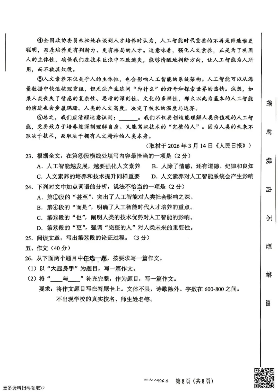 点击下方公众号名片,回复“试卷”,即可领取完整版试卷和答案↓↓↓