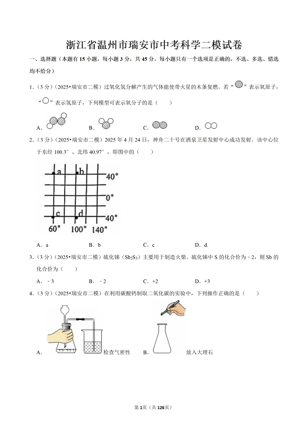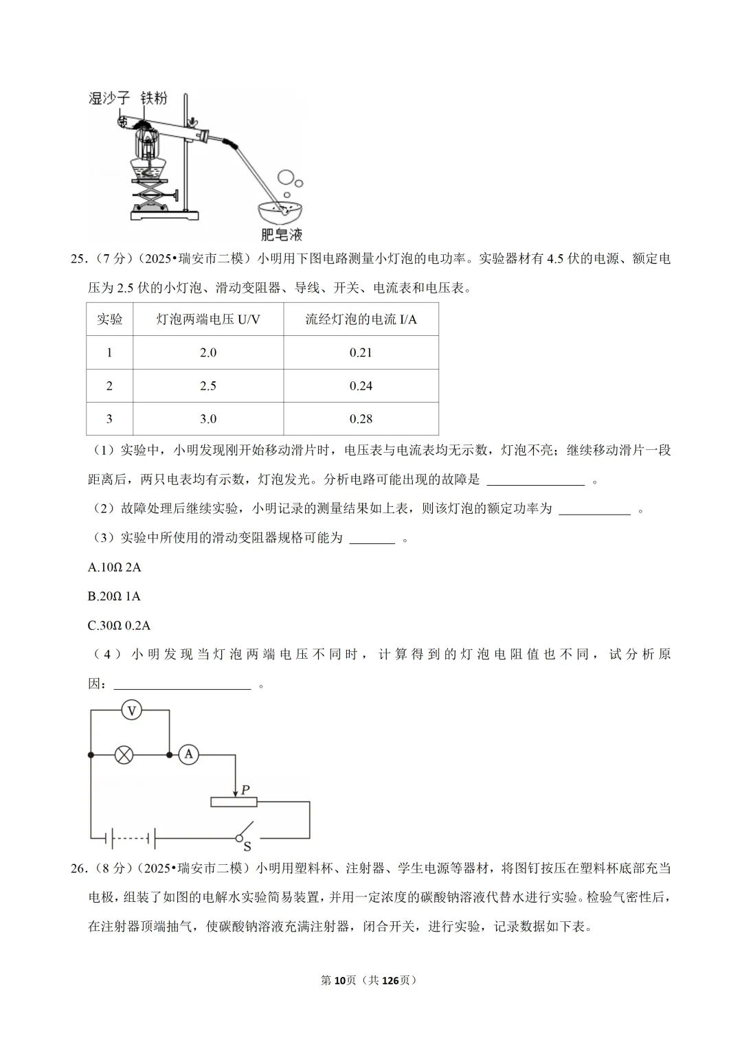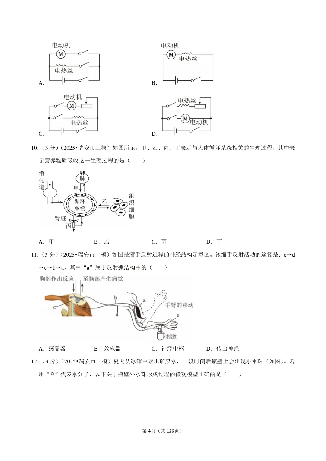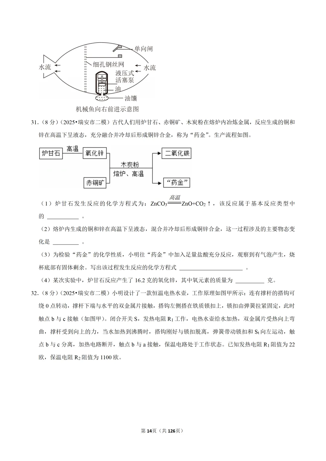 >【九年级科学】浙江温州市瑞安中考二模试卷