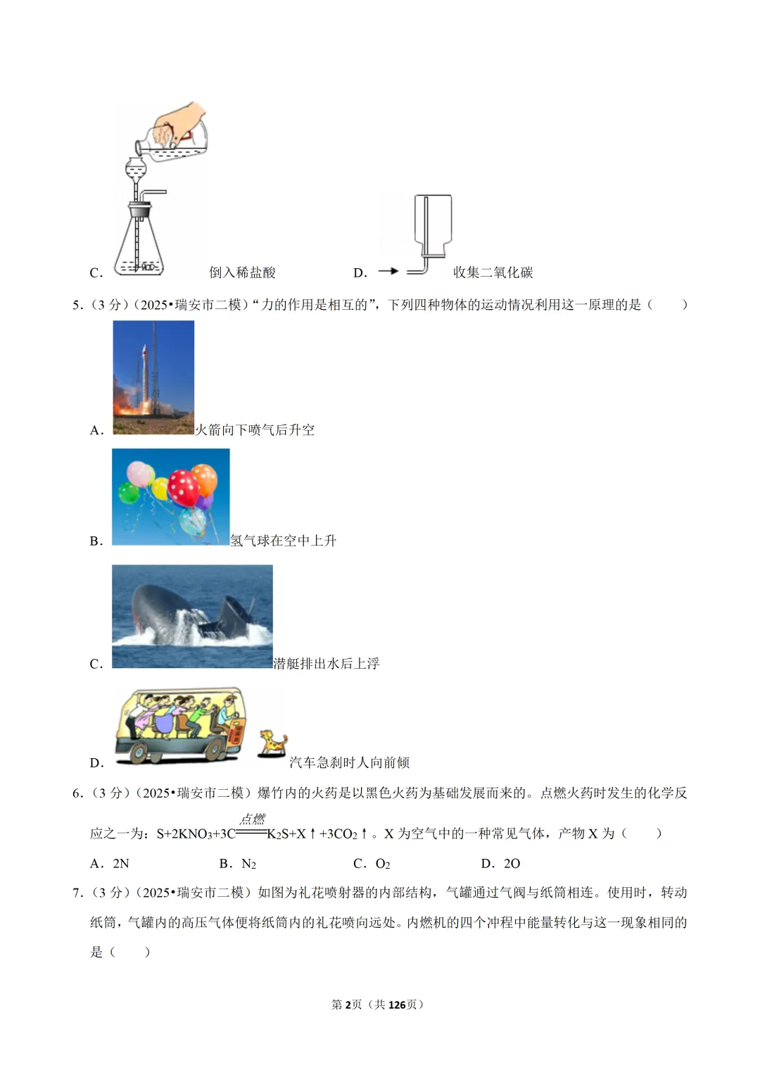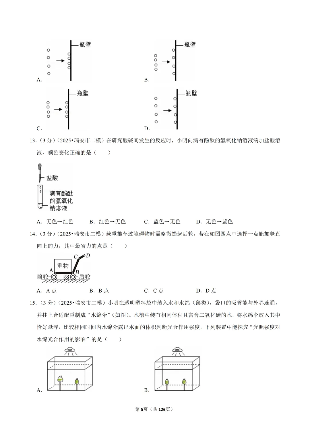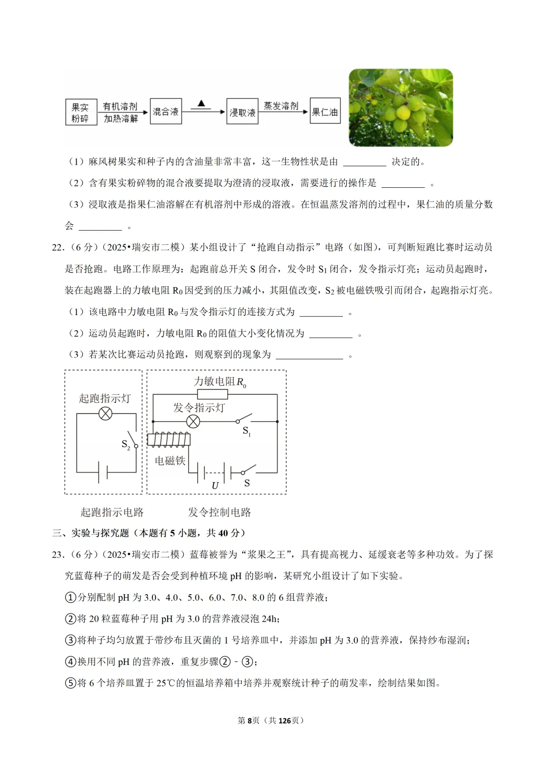 >【九年级科学】浙江温州市瑞安中考二模试卷