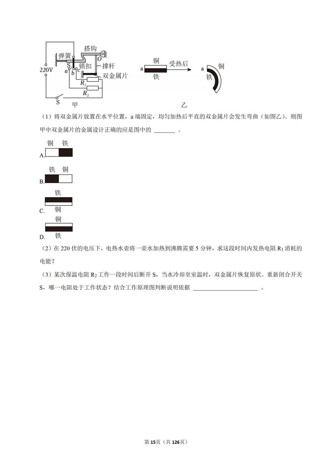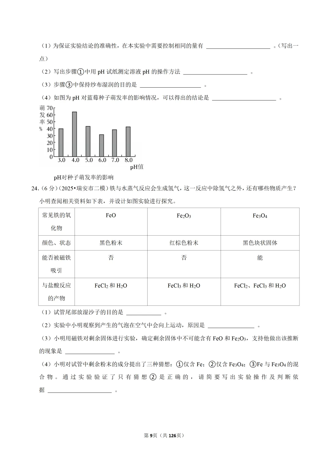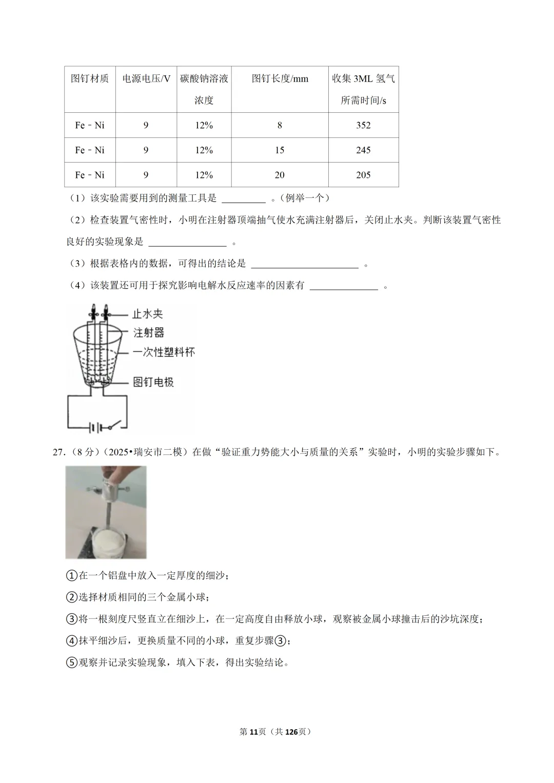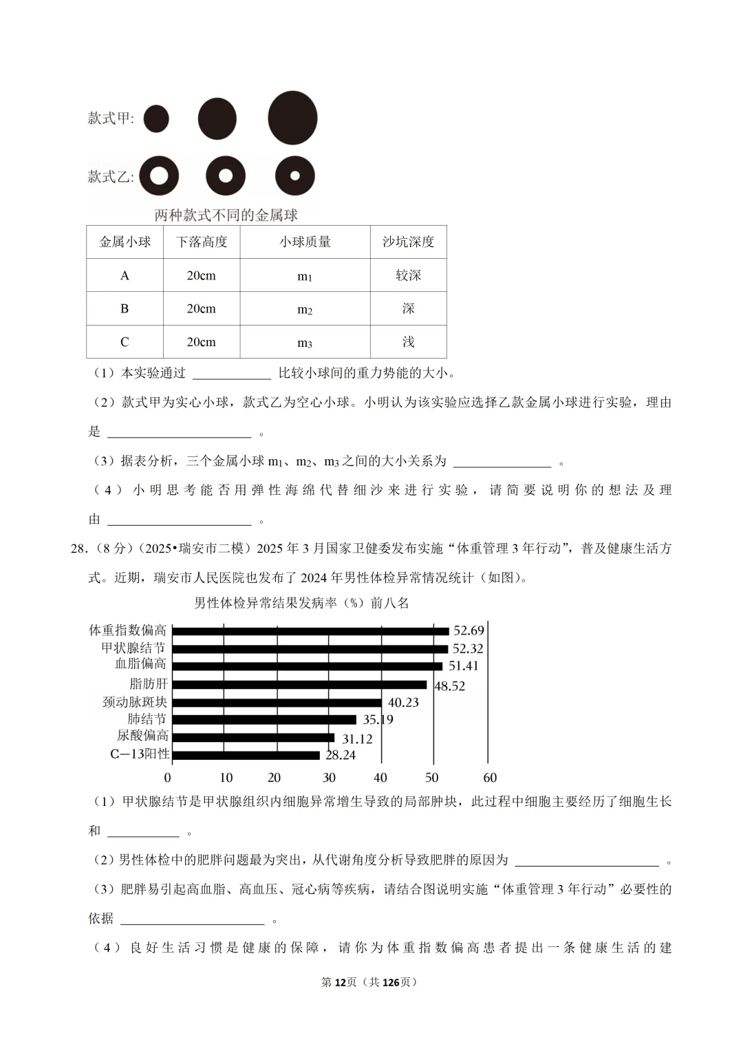 >【九年级科学】浙江温州市瑞安中考二模试卷