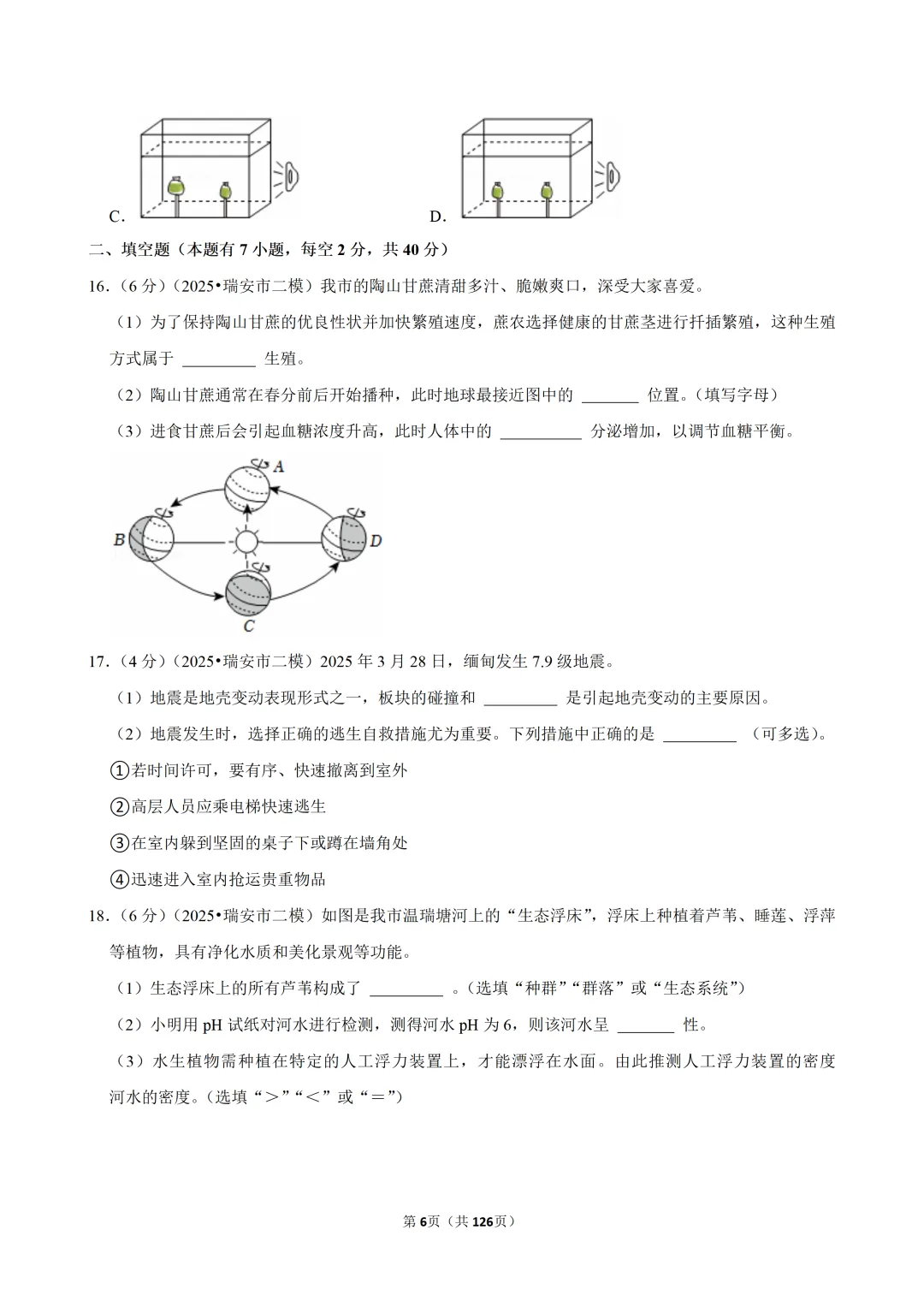 【九年级科学】浙江温州市瑞安中考二模试卷
