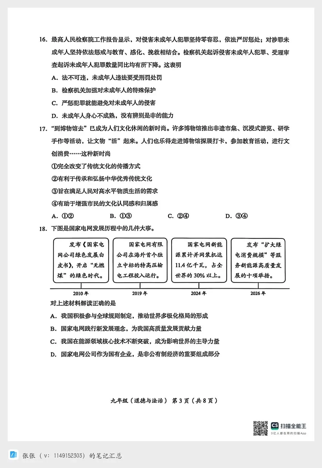 >【2026北京海淀一模道法试卷】新鲜出炉喽!