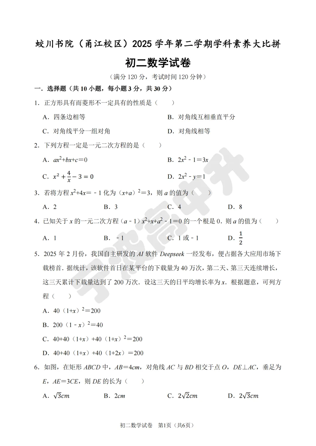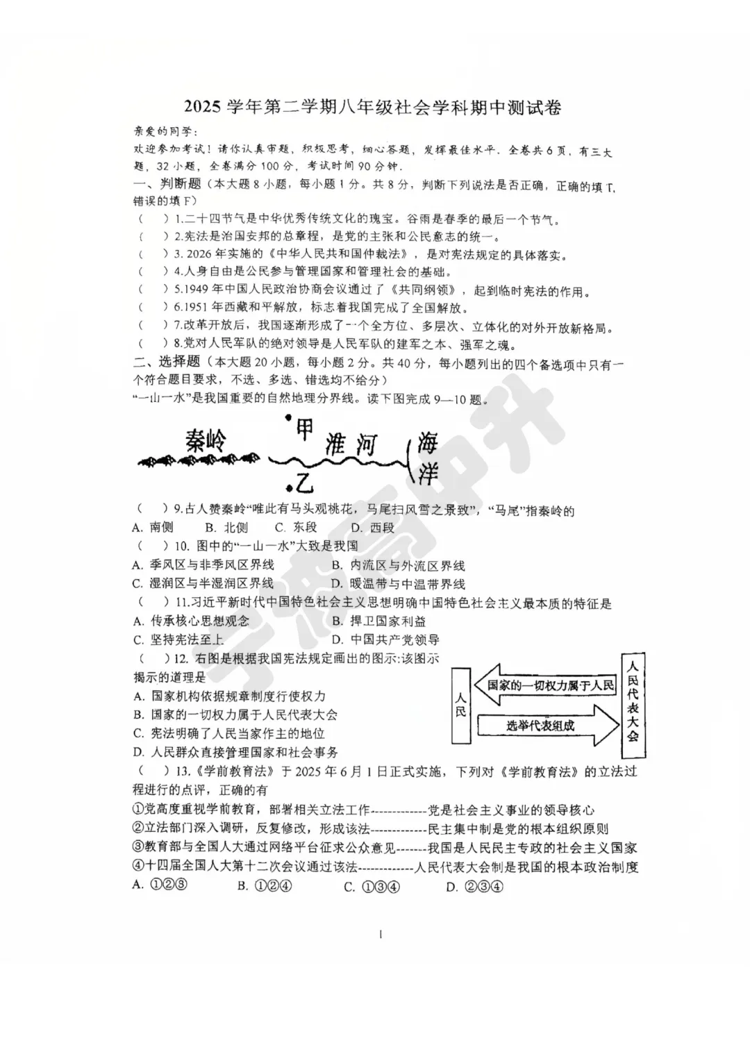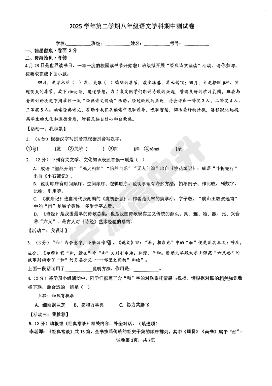 分享26年4月八下期中考试试卷大合集~需要的同学文末下载PDF版及答案~